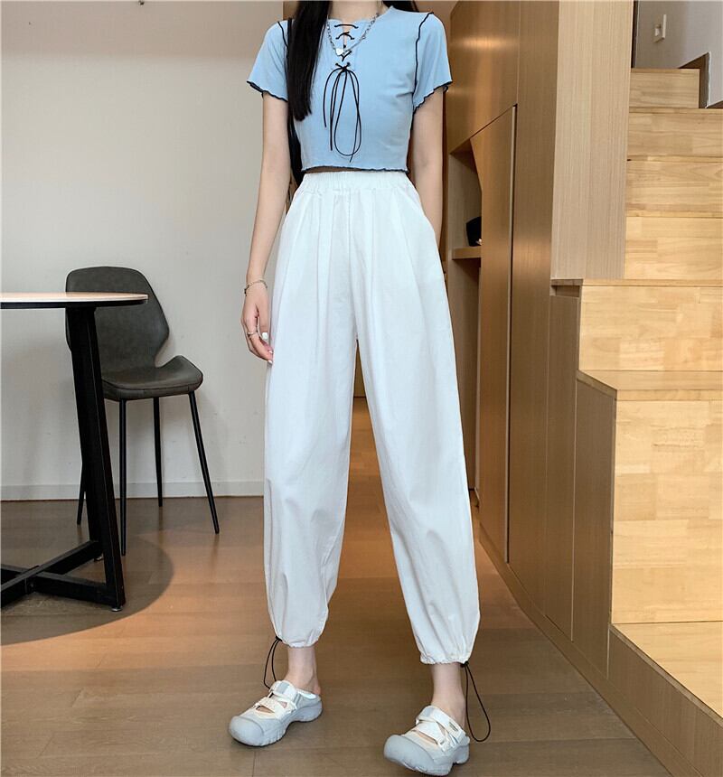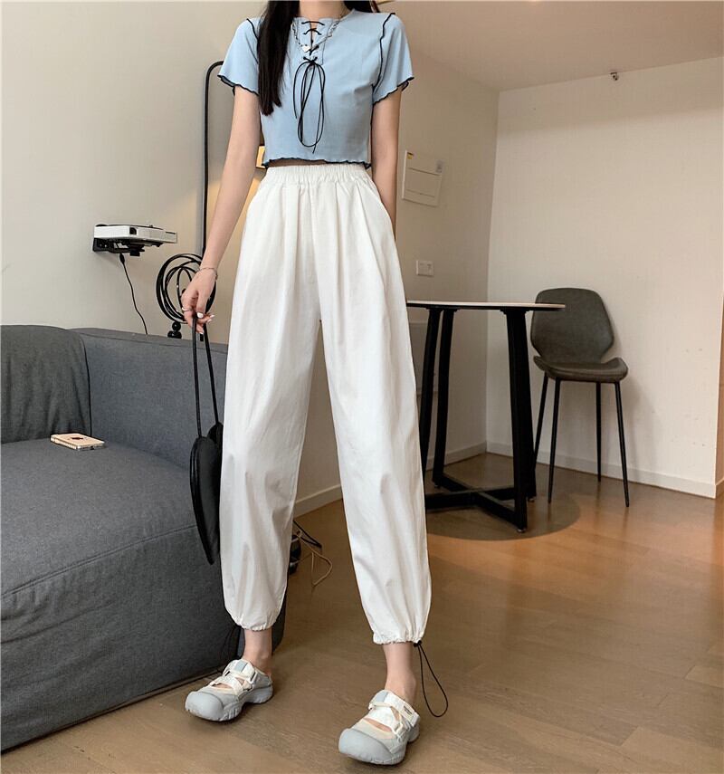 パンツ サマー薄手ハイウェストウェストギャザー 夏物 YY-ファッション36775378895