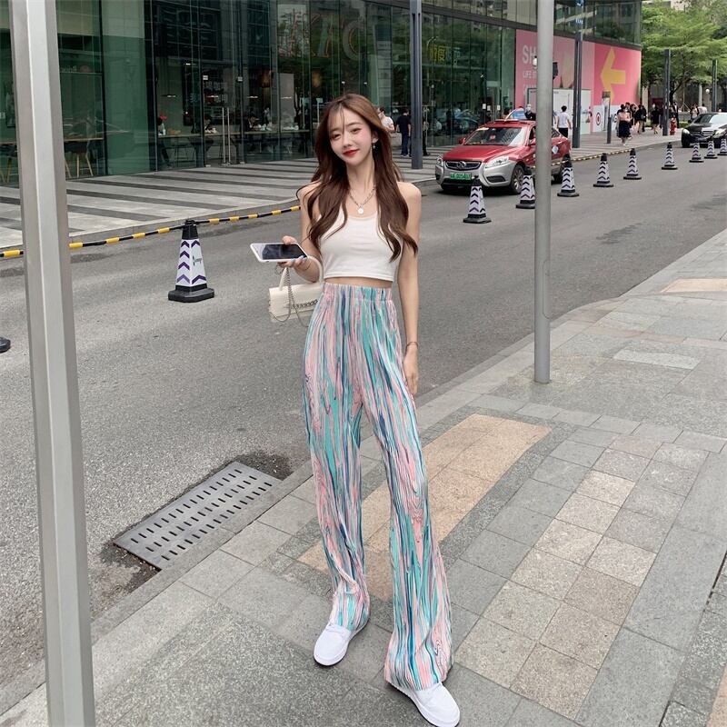 ルーズプリーツパンツ サマーレッド薄手カジュアルハイウェストレディース 夏物 YY-ファッション46812412076