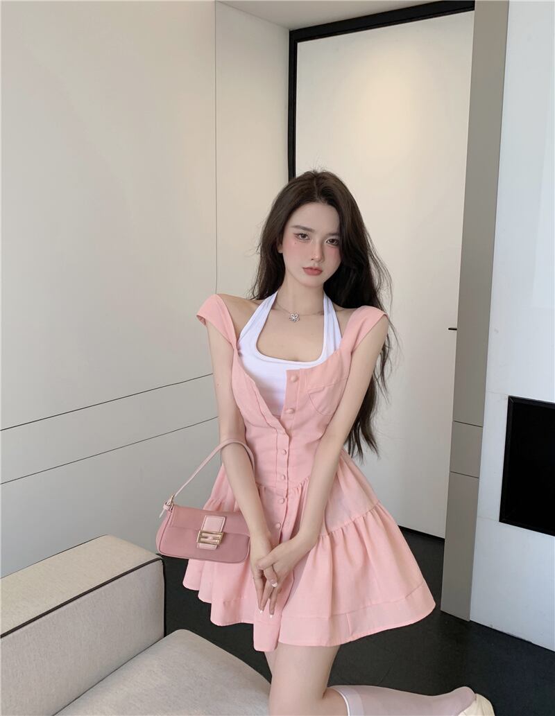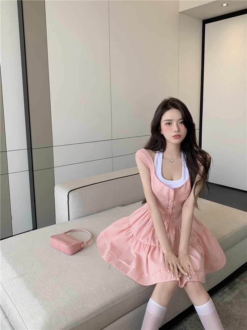 ドレス Aラインショートスカート サマースタイル薄手 ピンク 夏物 スクウェア YY-ファッション66133000073