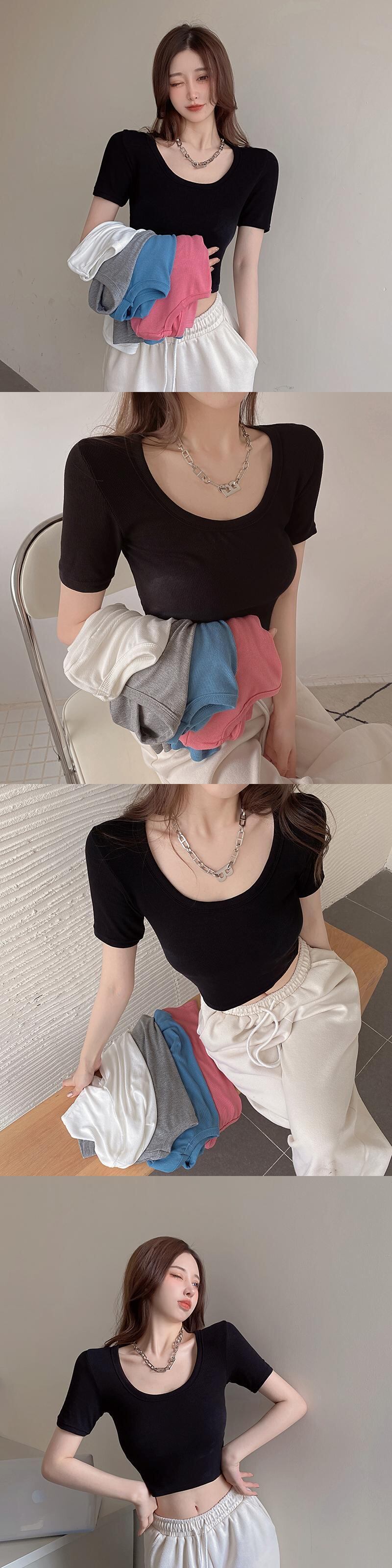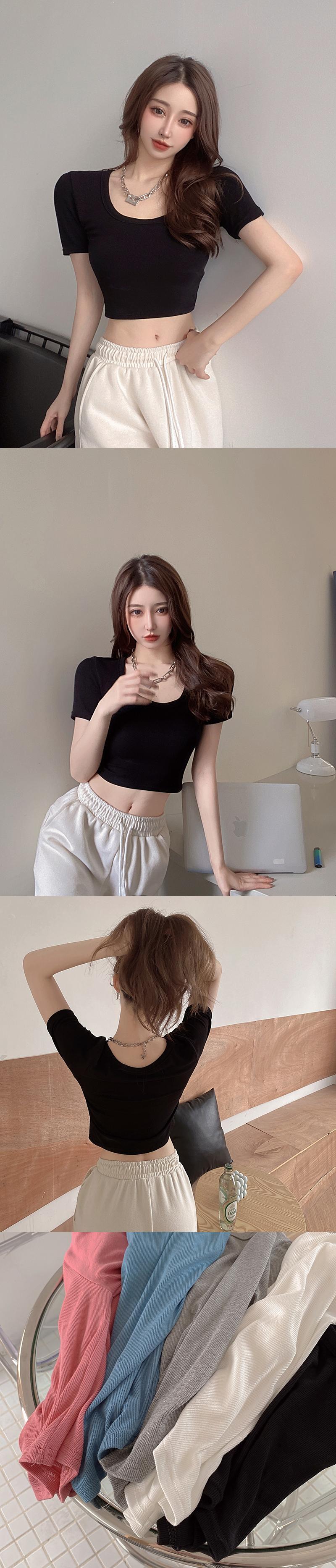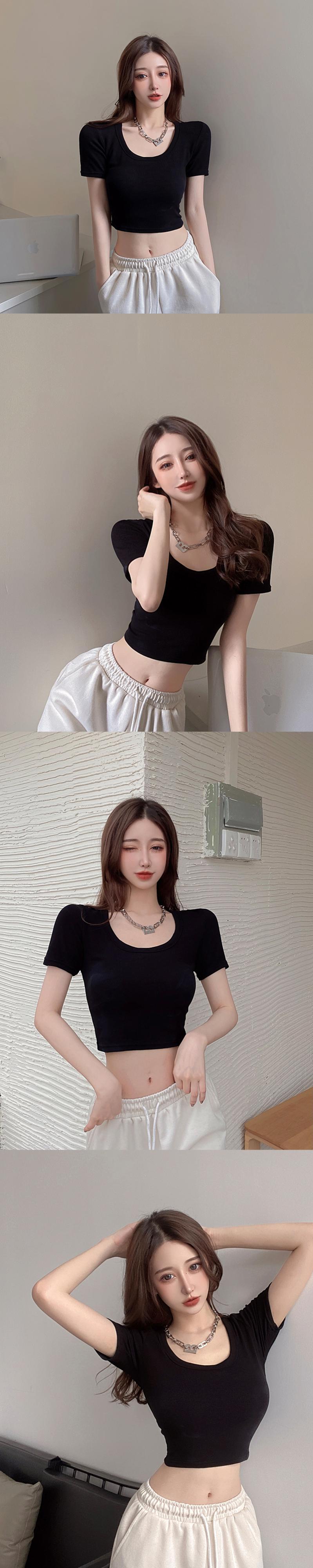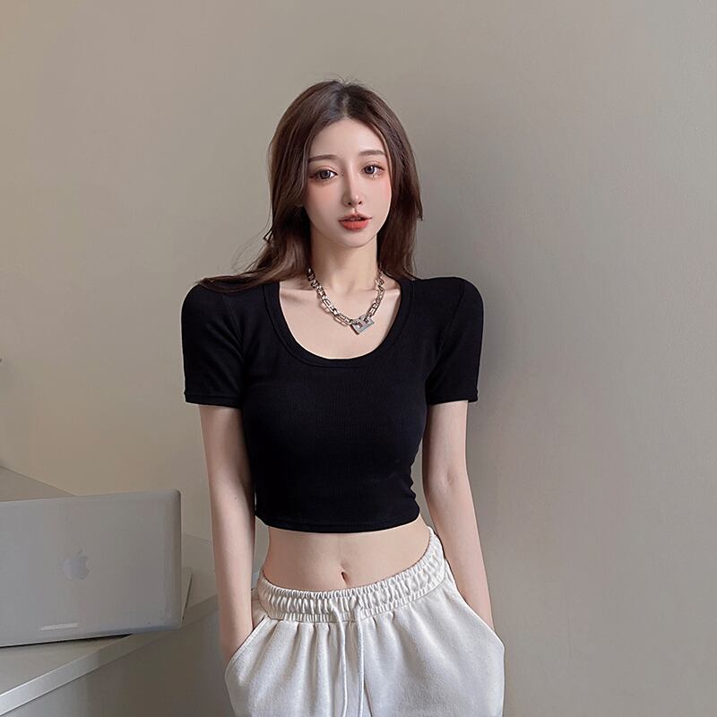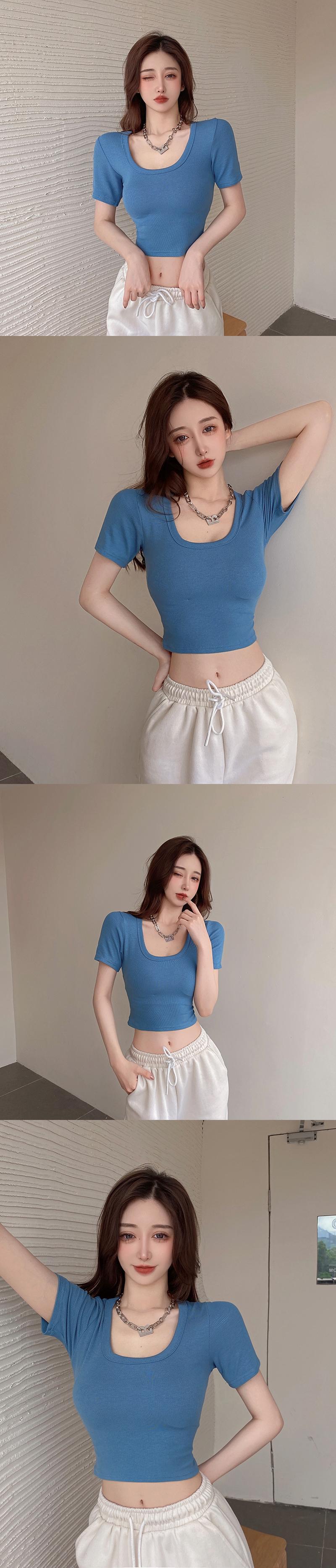サマースリムシャツ ハイウェストウェストショートTシャツ レディース 夏物 YY-ファッション63027472359