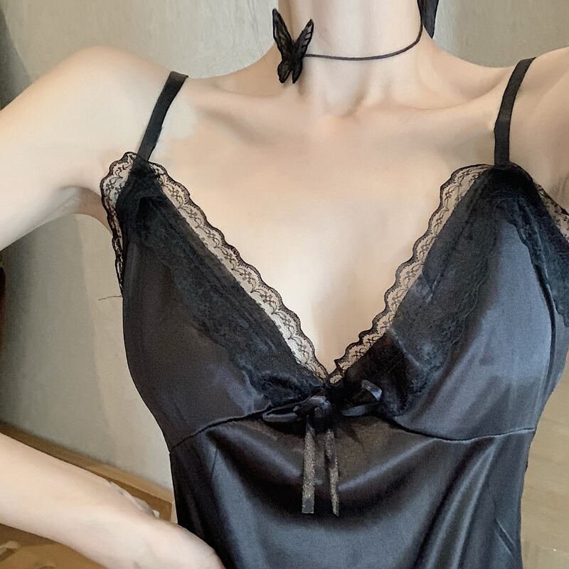 ブラックレースサイドドレス サマー薄手バック 夏物 シルク YY-ファッション62970431385