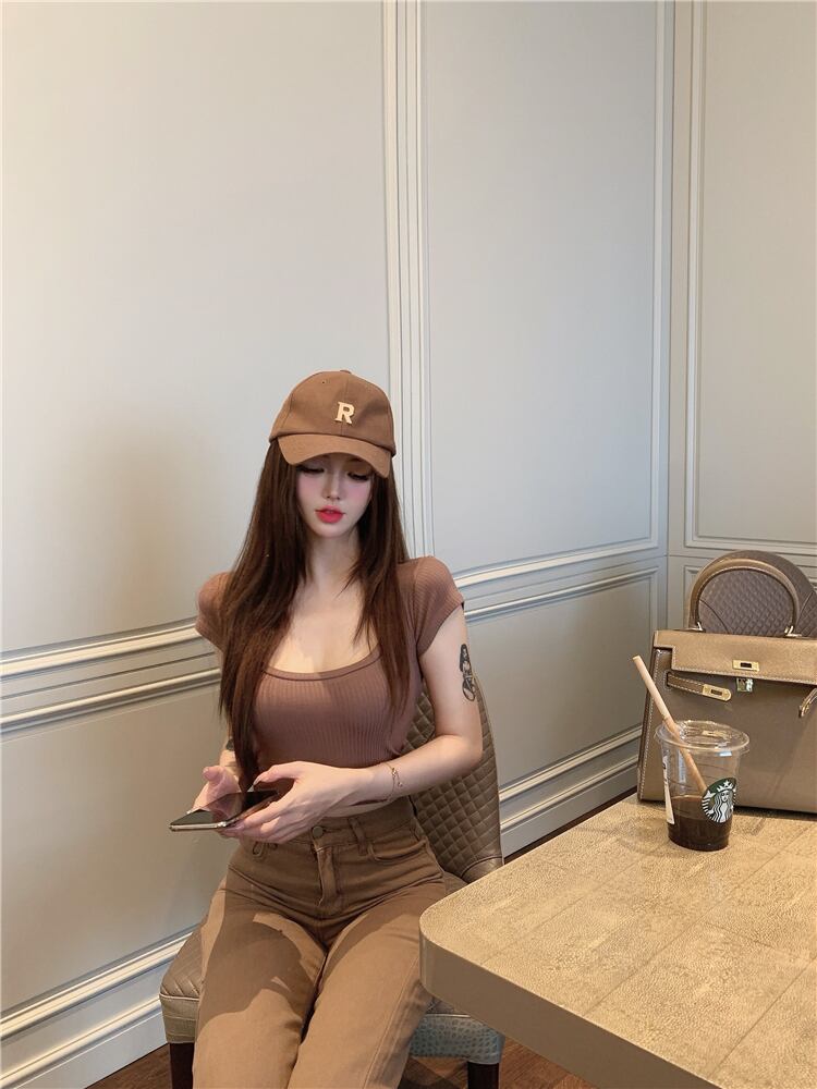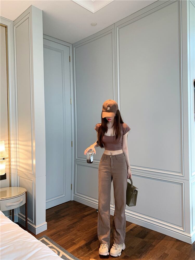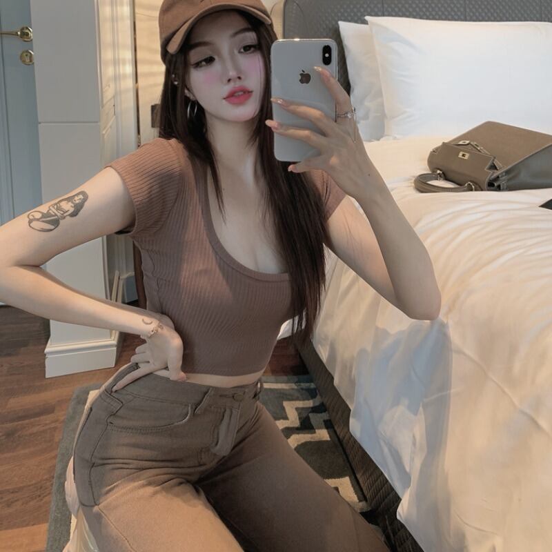 サマースタイルソリッド カラーカジュアルTシャツ スタンダードジーンズ ショートトップス レトロ 夏物 ソリッドカラー スクウェア YY-ファッション45511584866