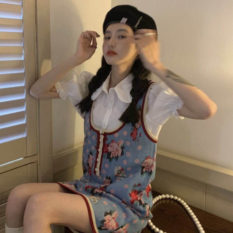 サマースタイルスタンダードフローラルドレス スリーブシャツ レディース レトロ 夏物 花柄 YY-ファッション11774395973