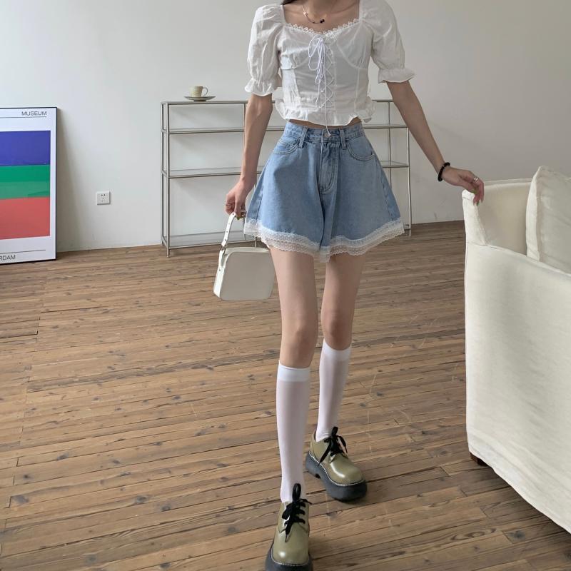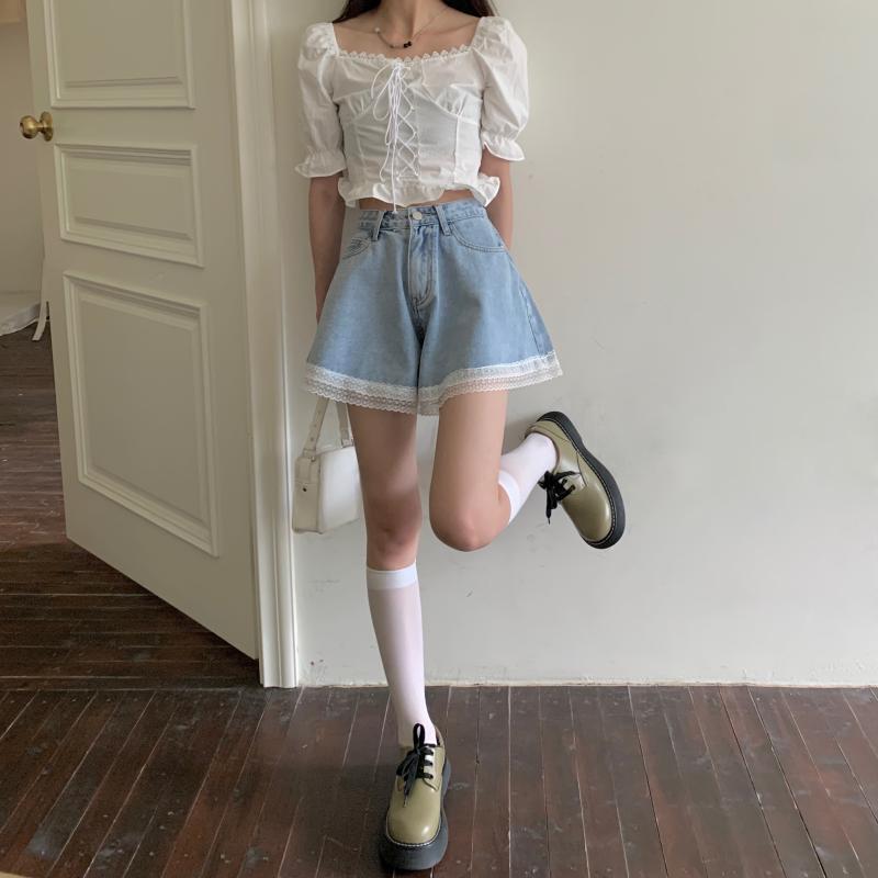 サマーレース薄手レディース ハイウェスト 夏物 ショーツ ブルマー ステッチ YY-ファッション7779824722