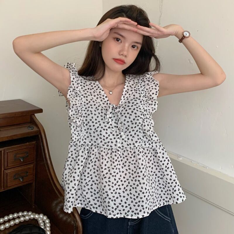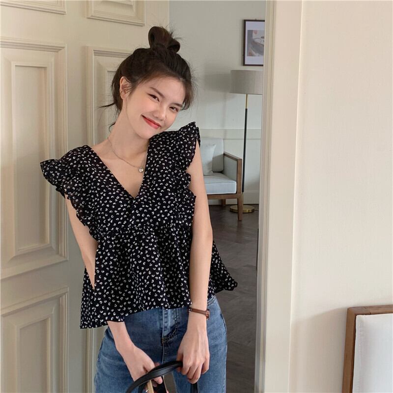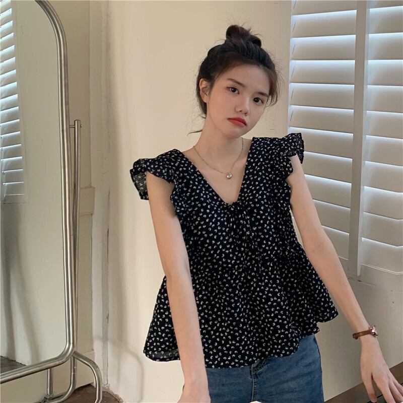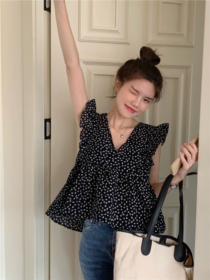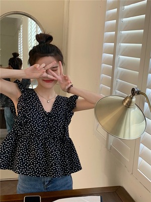 シャツ トップス サマー薄手Vネックフローラル 大人ガーリー スウィート キュート カジュアル 夏物 花柄 YY-ファッション37918397023