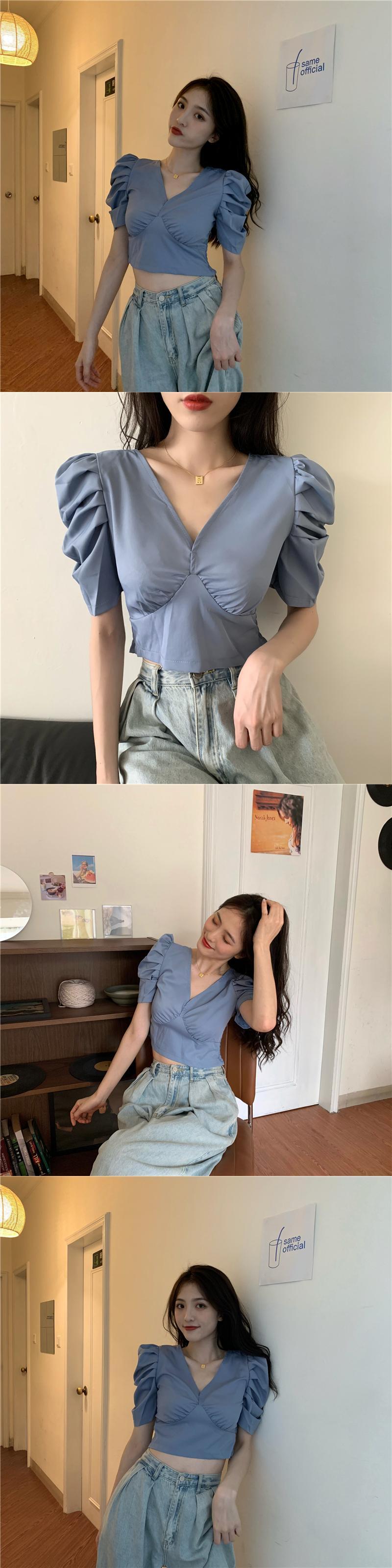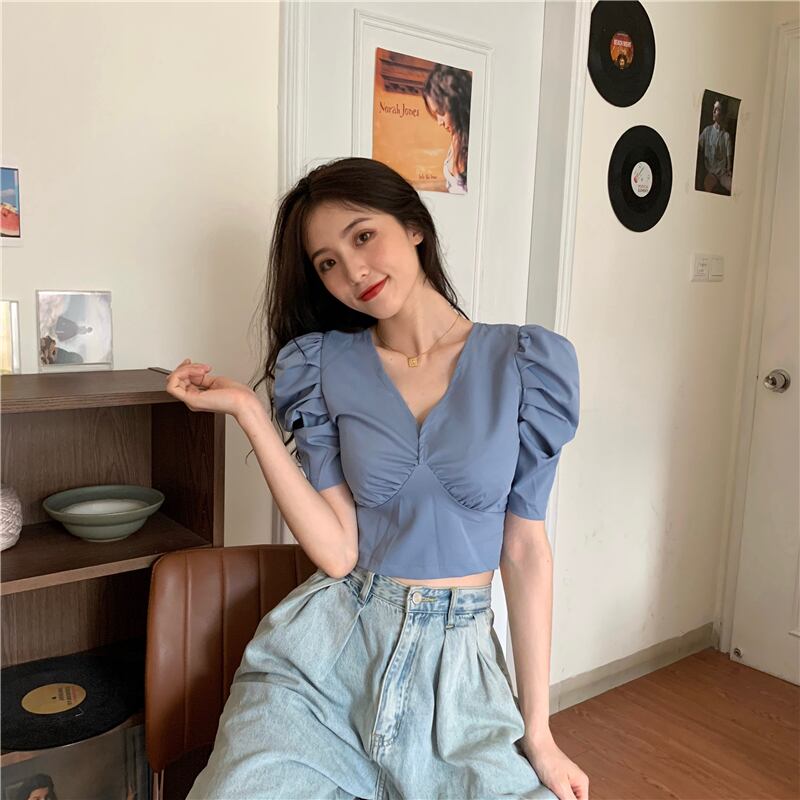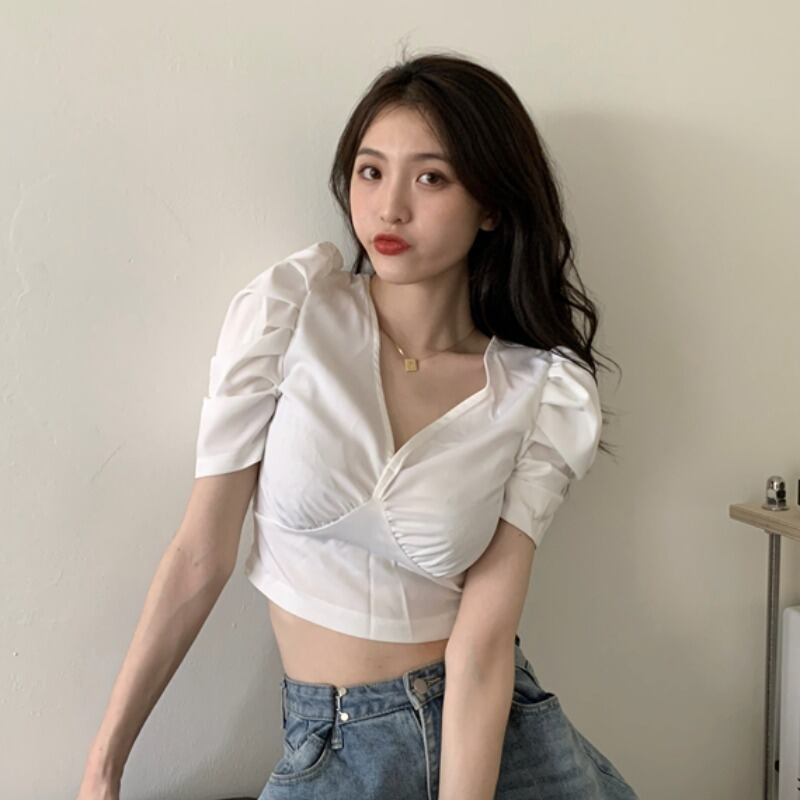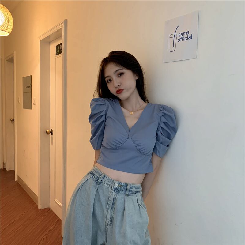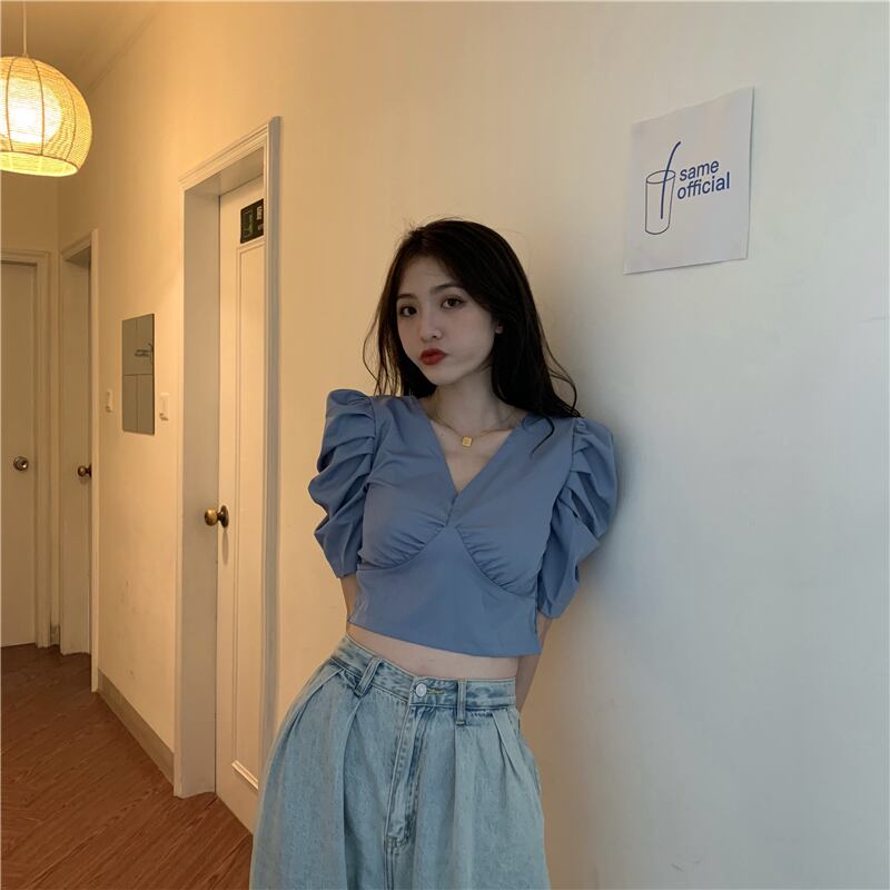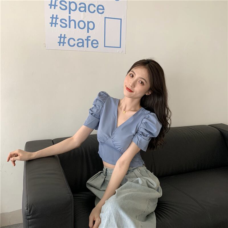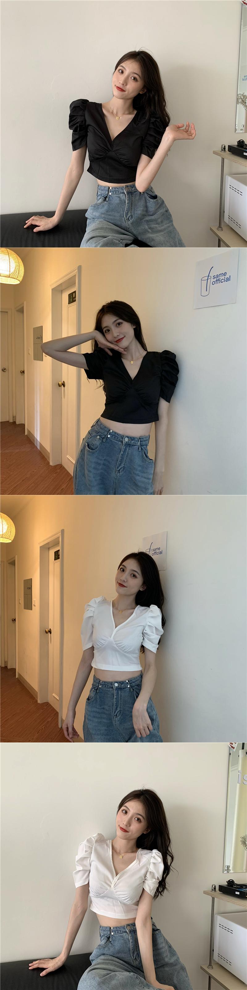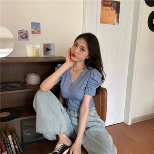 サマースタンダードVネックレッドシャツ レディース レトロ 夏物 YY-ファッション74744915342