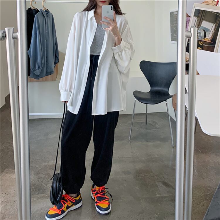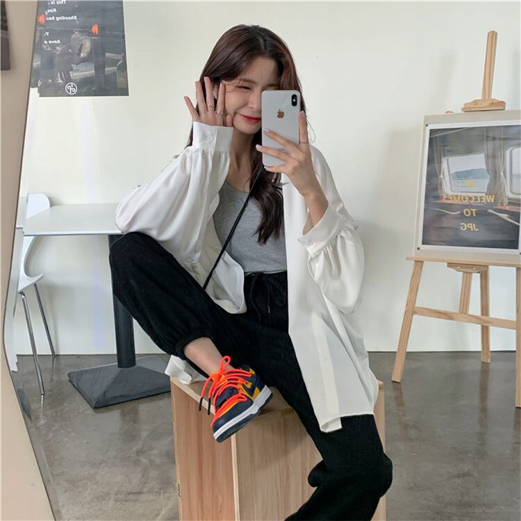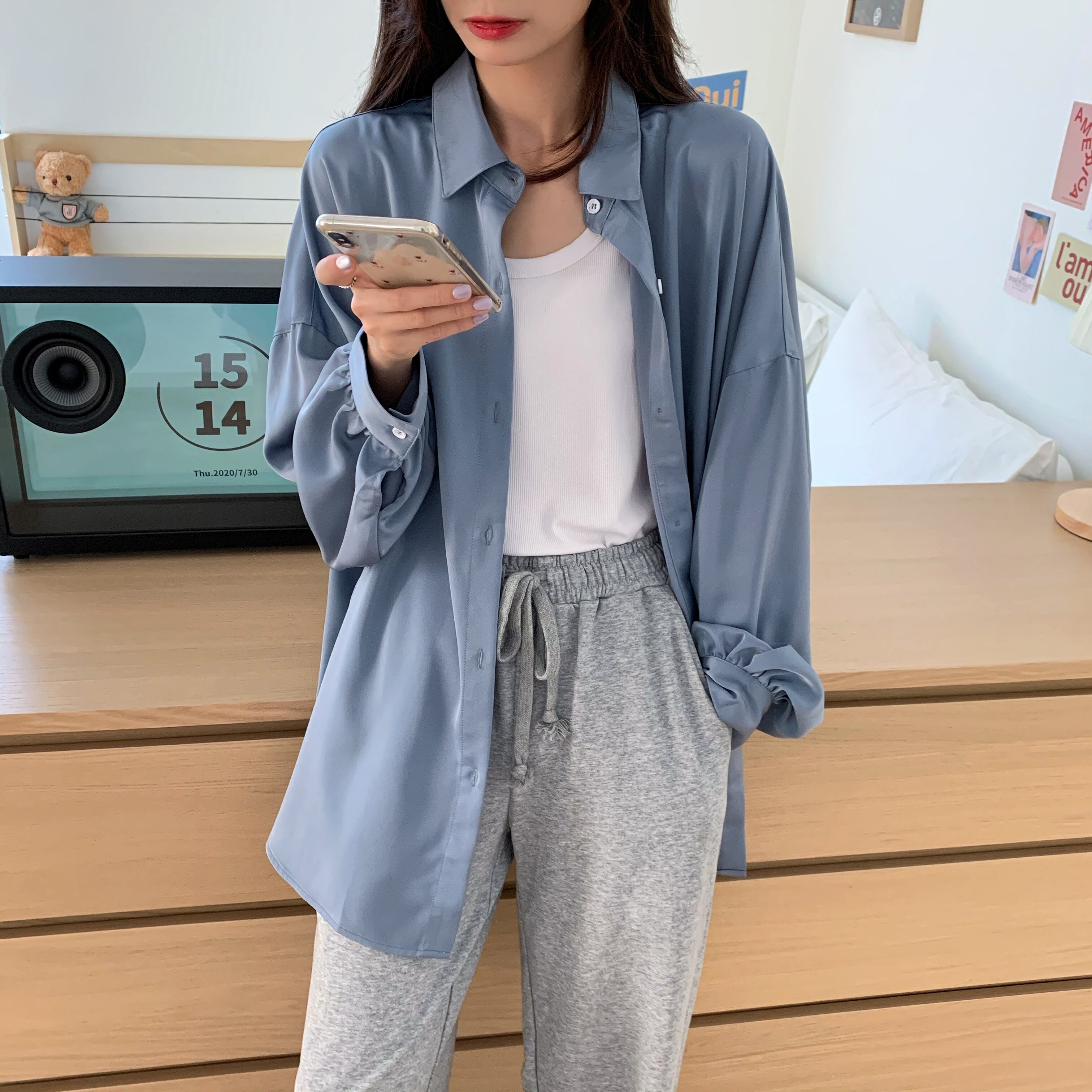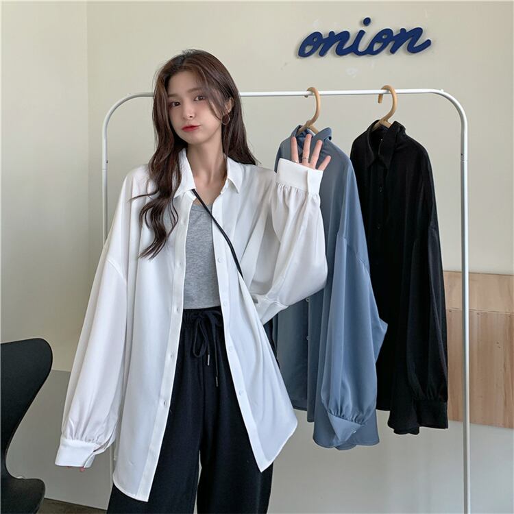 スタイルルーズスリーブシャツ トップス 薄手コート レディース ランタンスリーブ シルク YY-ファッション51914672748