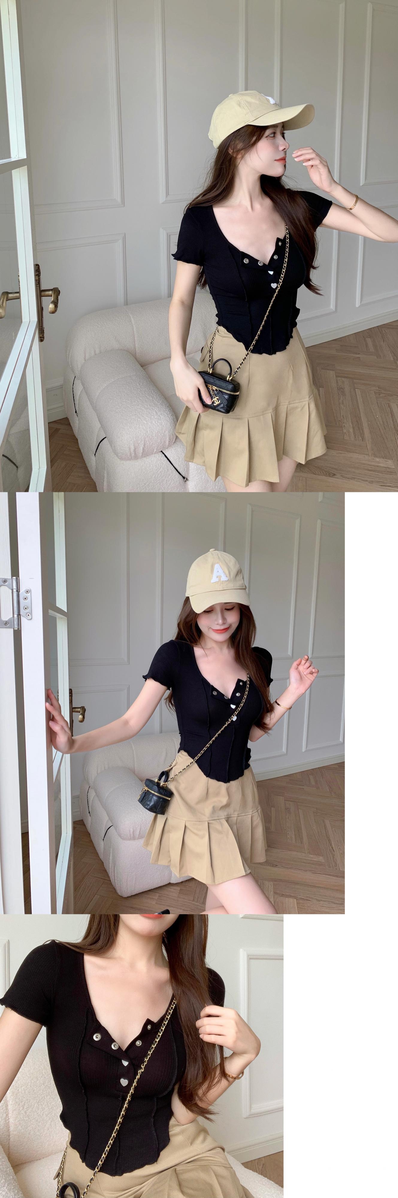 ショートラウンドネックTシャツ レディーススプリングサマー 春物 夏物 Oネック YY-ファッション42805105632