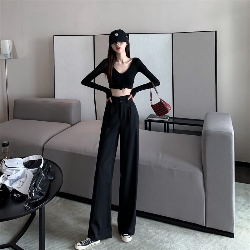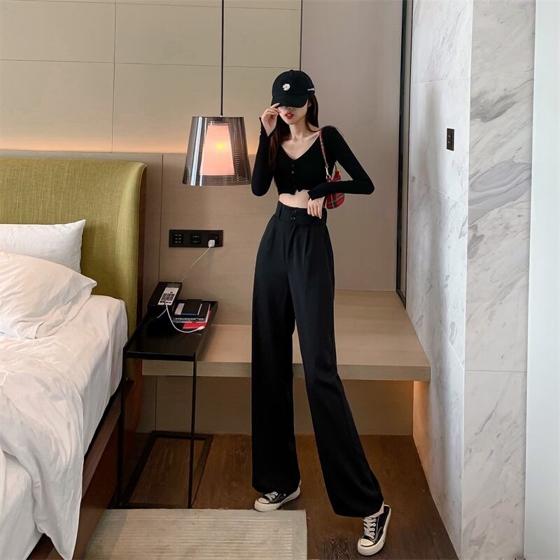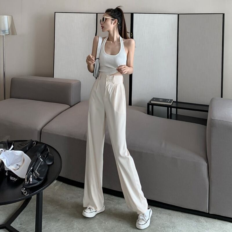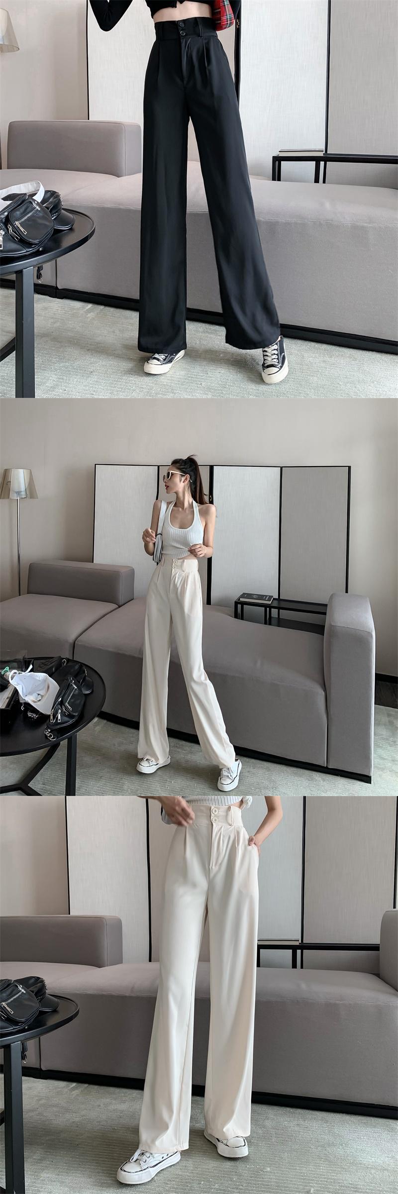 カジュアルパンツ スプリングサマー薄手ハイウェストウェストルーズワイドレッグ 春物 夏物 ワイドパンツ YY-ファッション15183090897