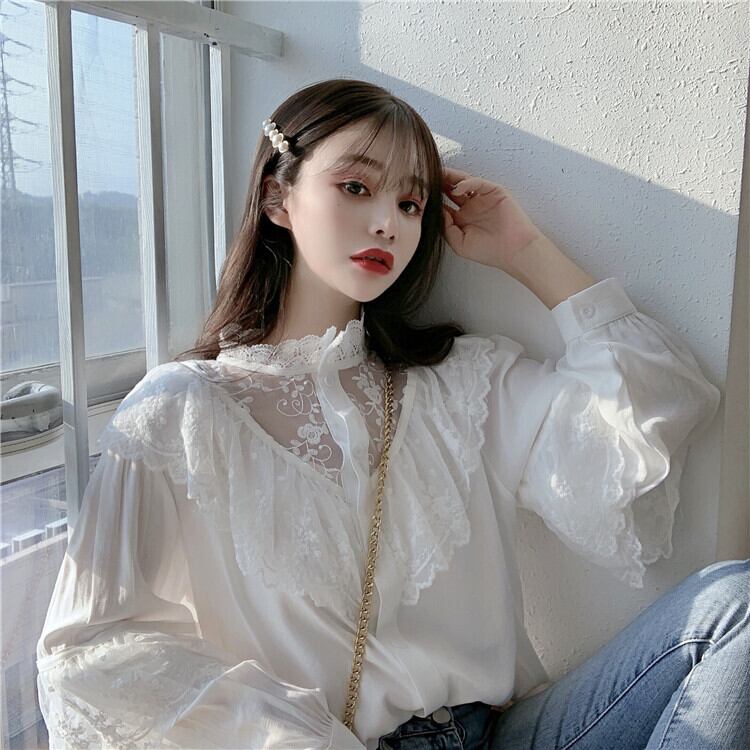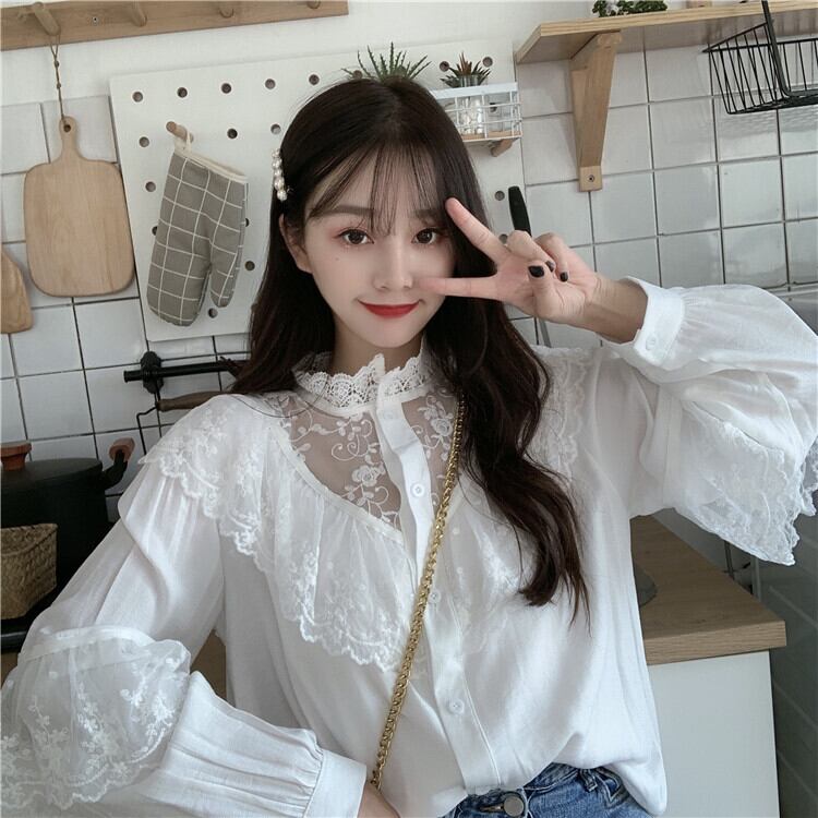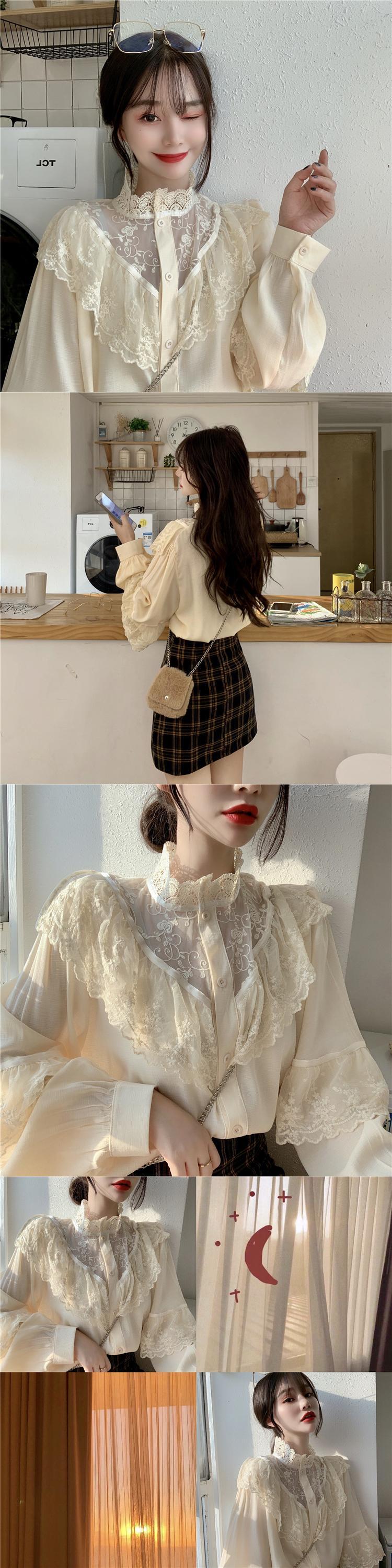 スタンダードレースシャツ レディースサマースタイルカラートップス ロング レトロ 夏物 YY-ファッション88611055590
