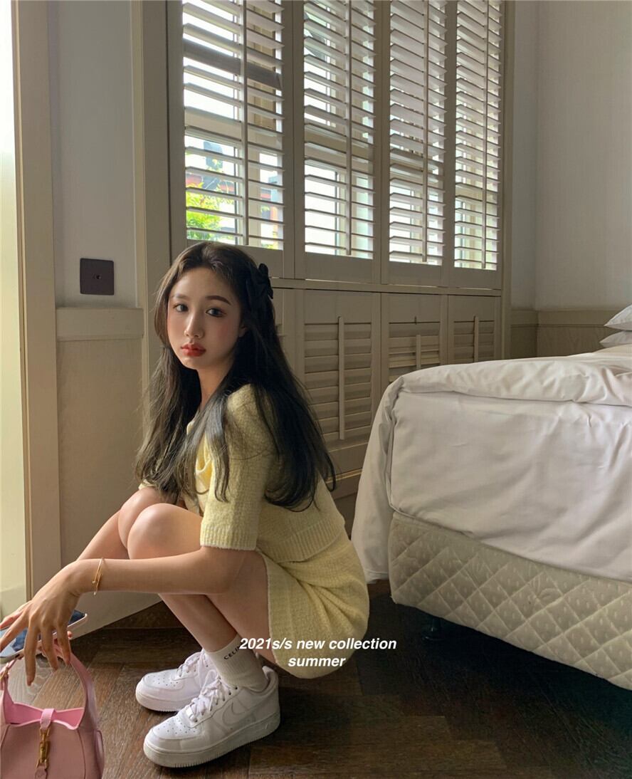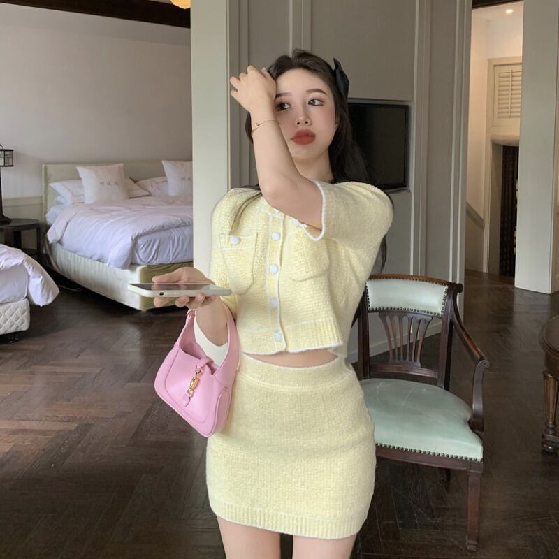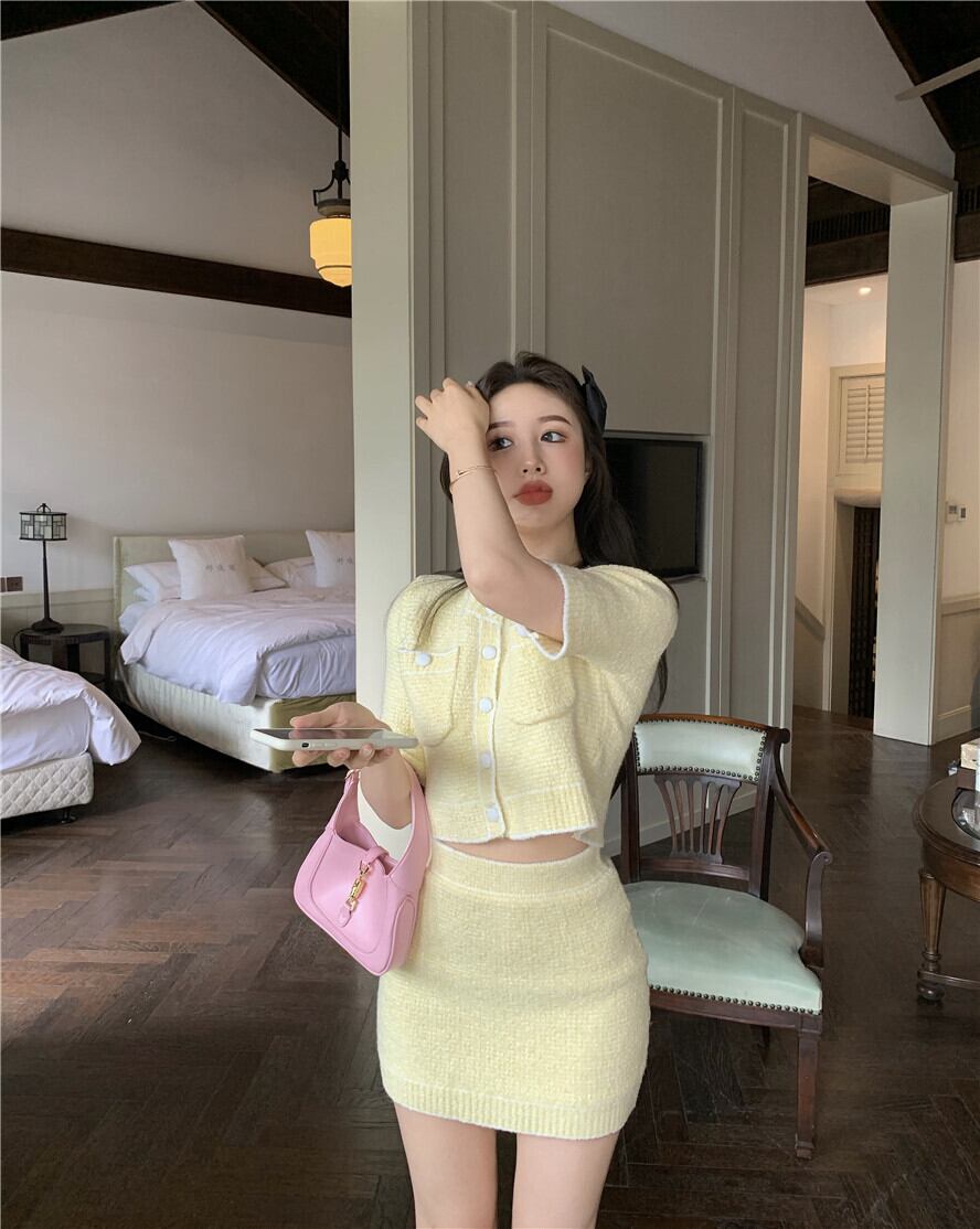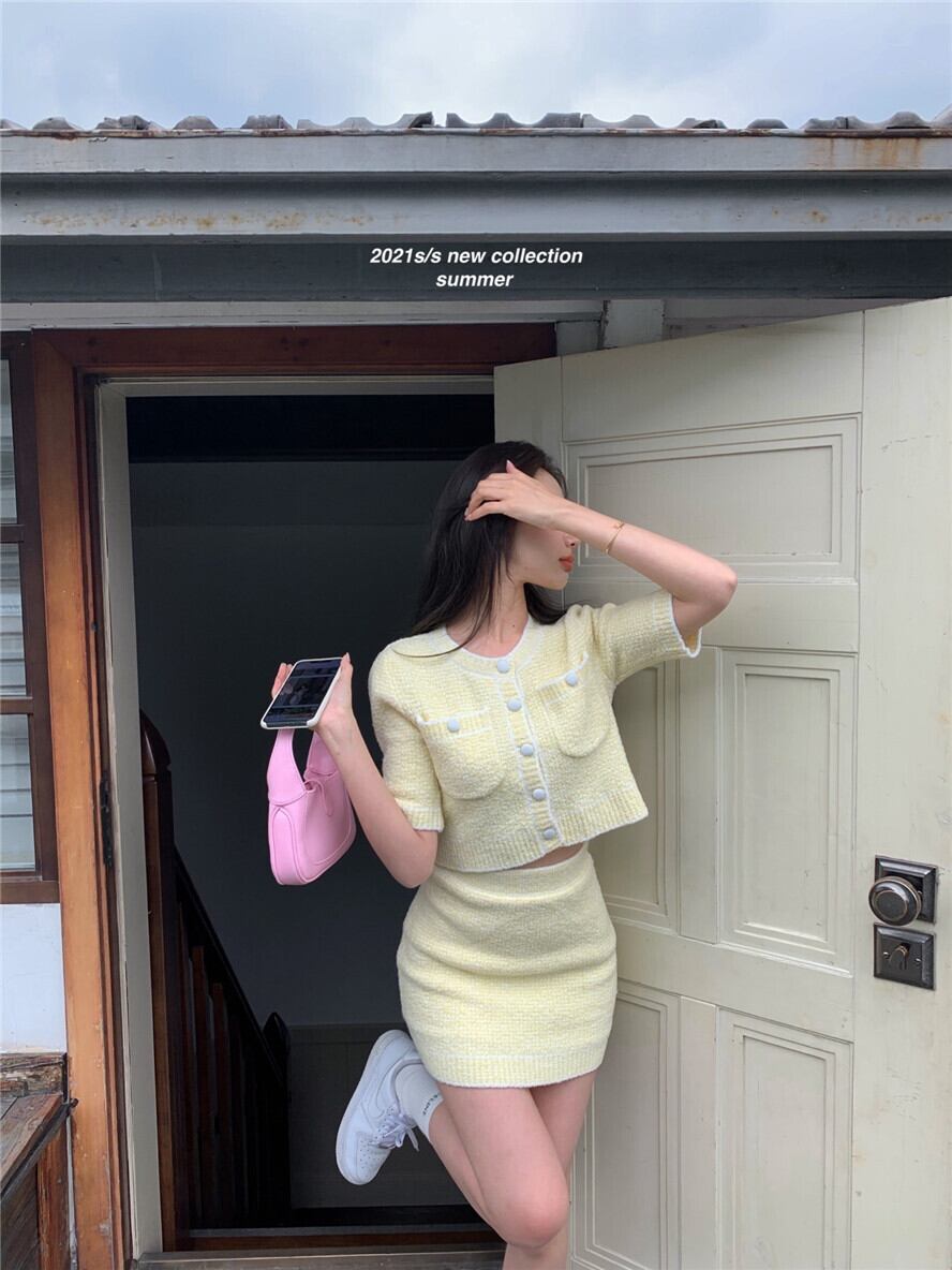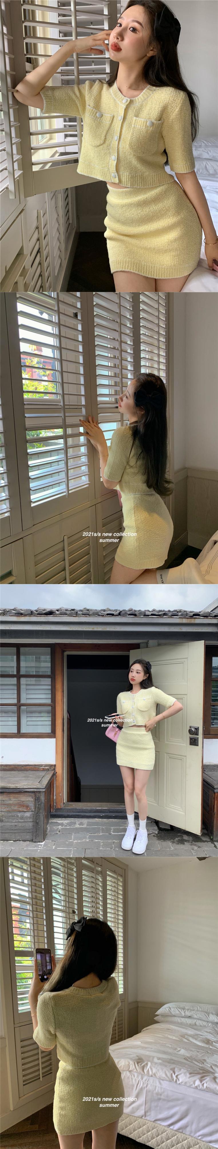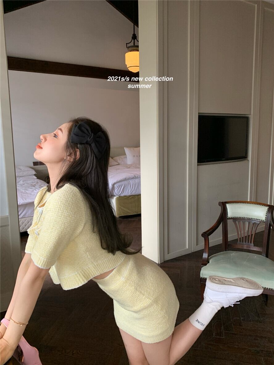 ニットカーディガンジャケット レディースサマー薄手イエローショートセーター 半袖スリーブトップス ハーフスリーブ 夏物 YY-ファッション71061224002
