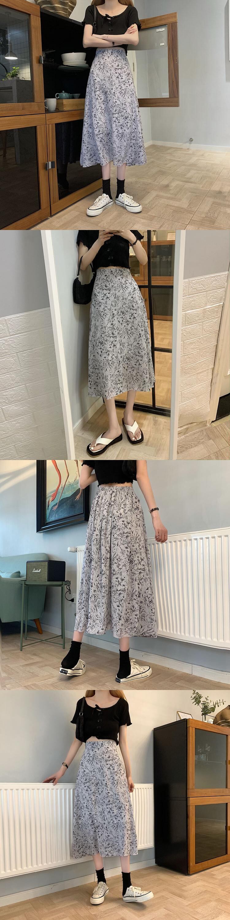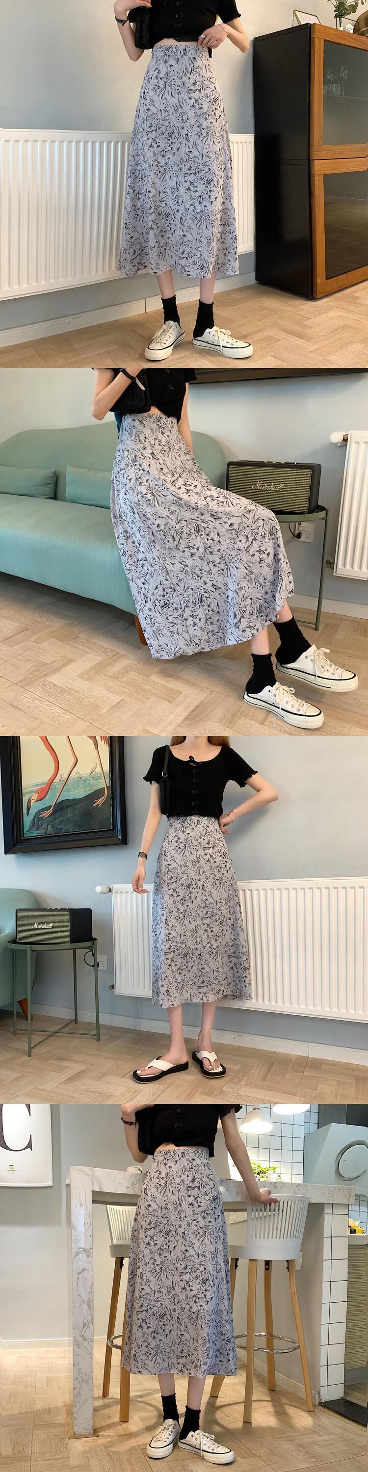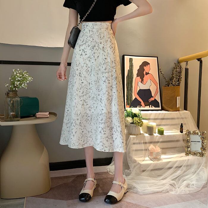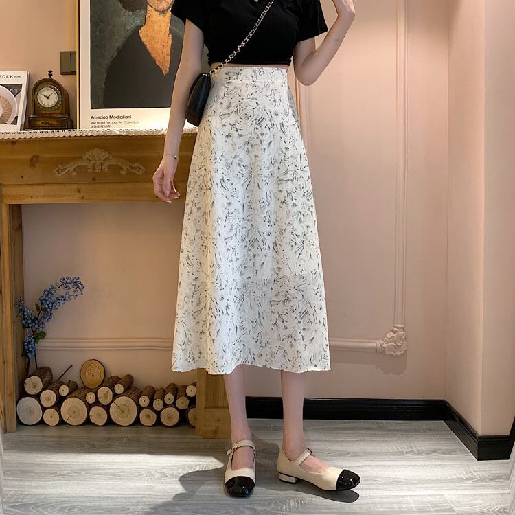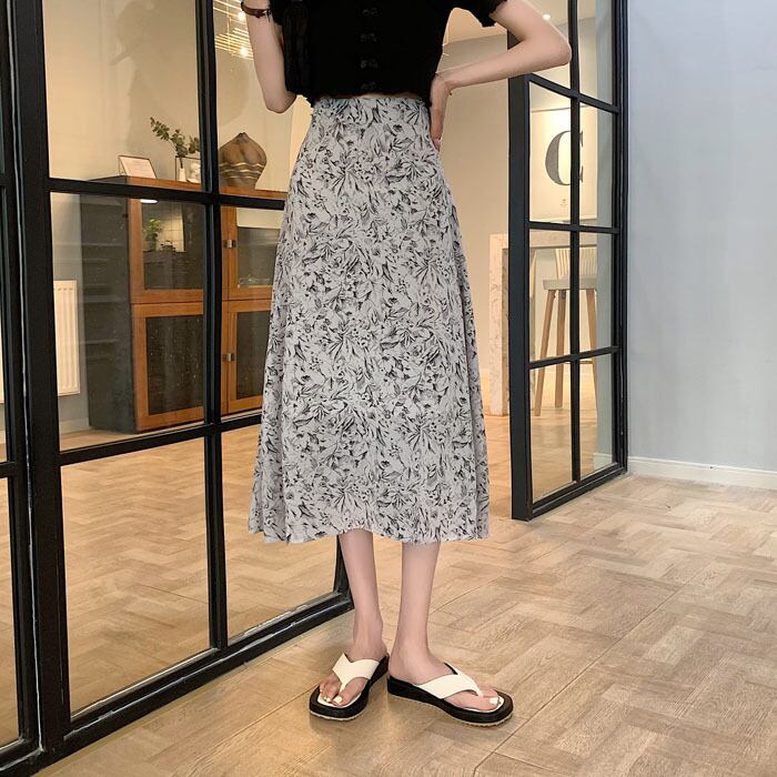 Aラインスカート サマーハイウェスト薄手フローラルアーム 夏物 花柄 YY-ファッション86953338282