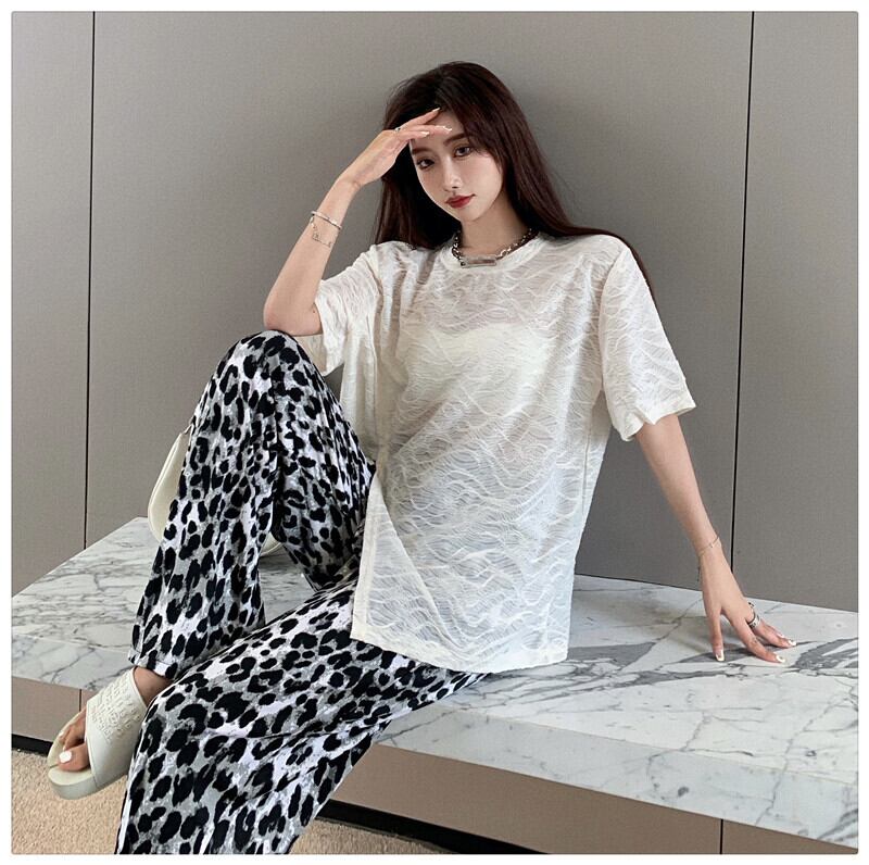 サマーTシャツ ハイウェストウェストレオパードプリント柄ルーズレディース 夏物 YY-ファッション48363925682