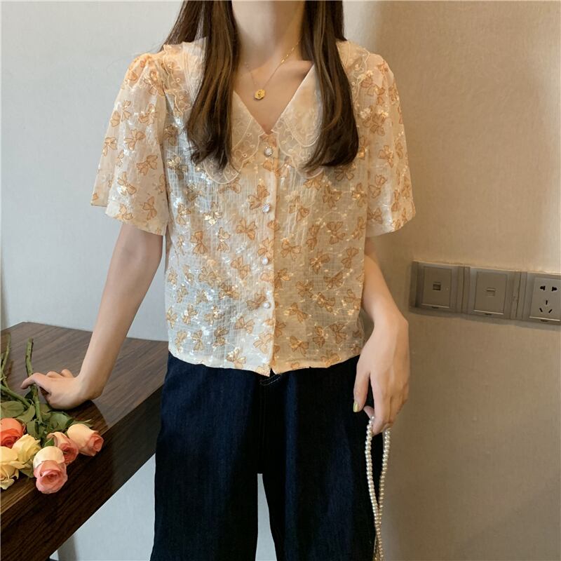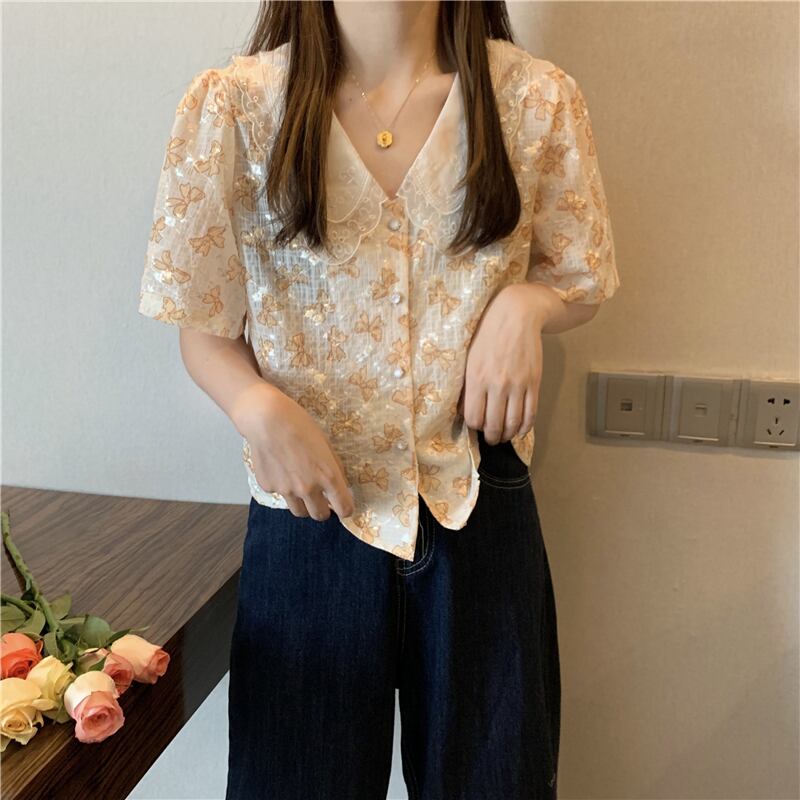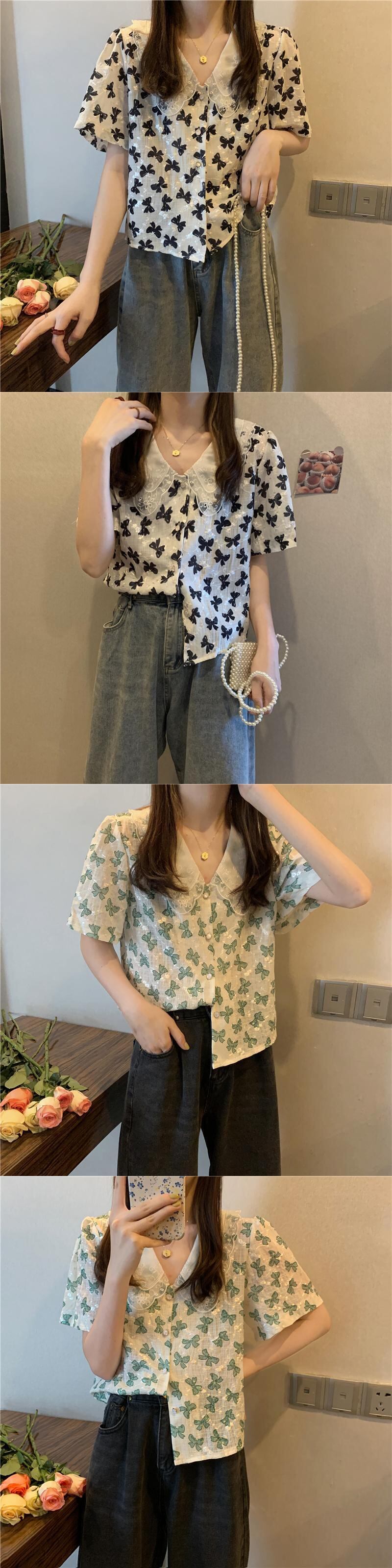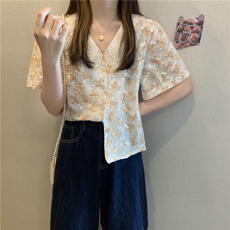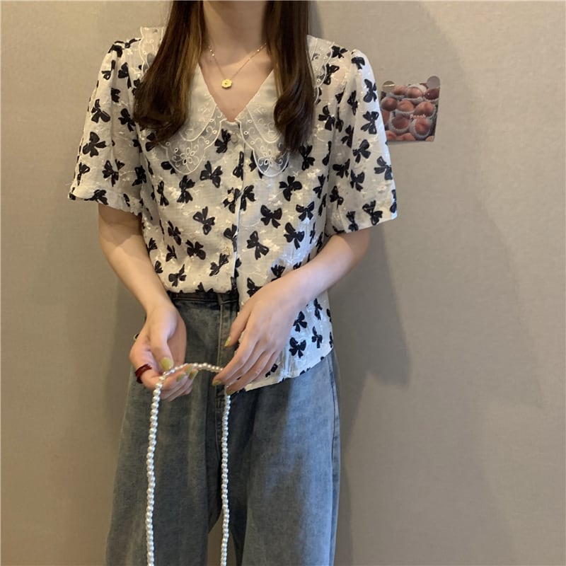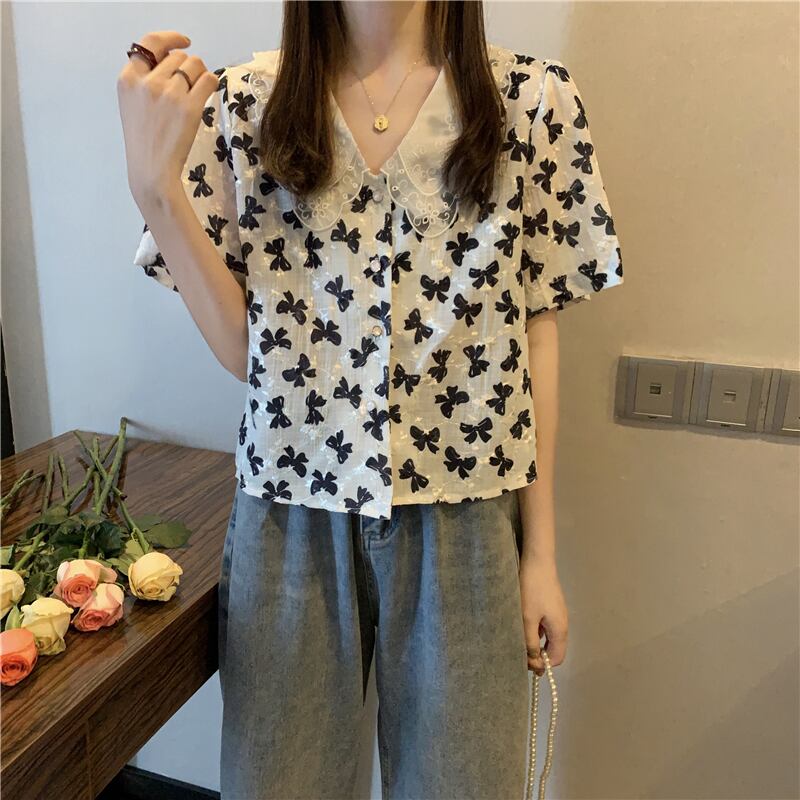 サマースタイルカラーシャツ ルーズプリントブラウス レディース リボン 夏物 YY-ファッション49405755028