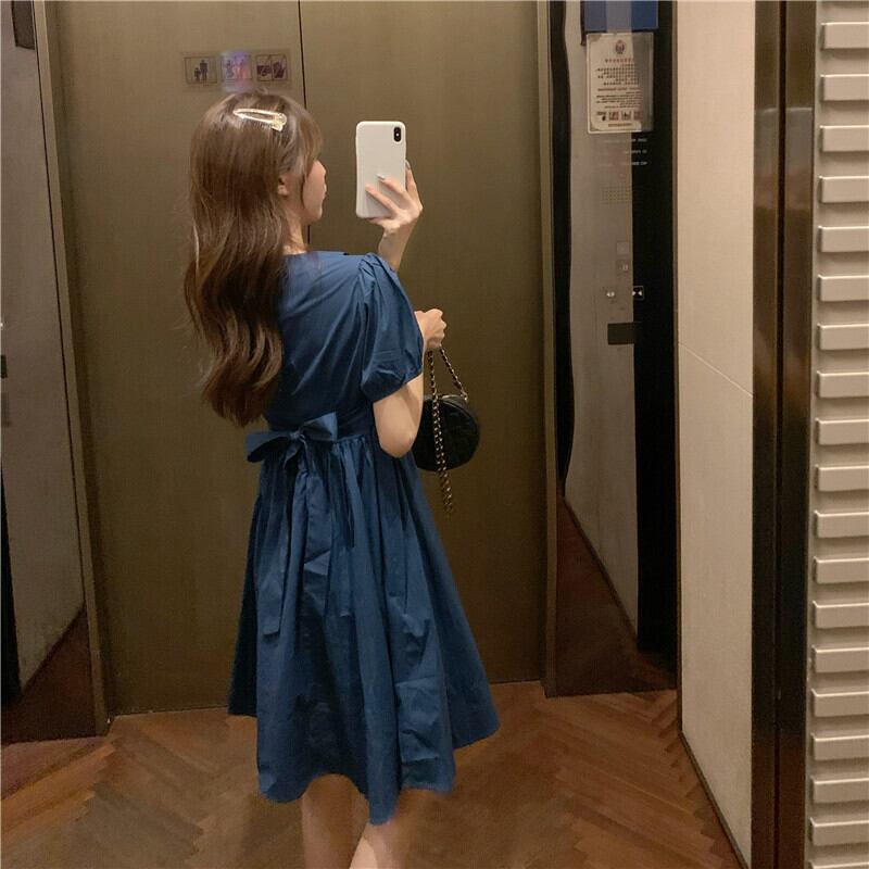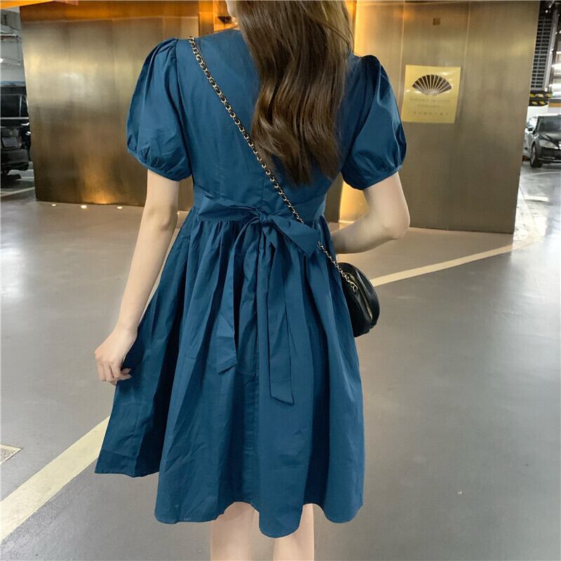サマースタンダードVネックスリーブドレス スカート リボン レトロ 大人ガーリー スウィート キュート カジュアル 夏物 YY-ファッション28011226130