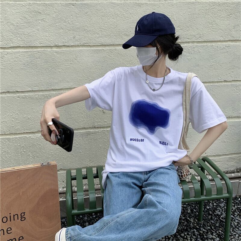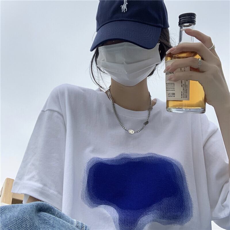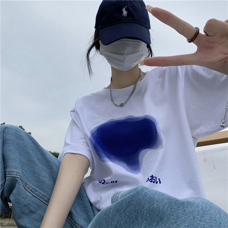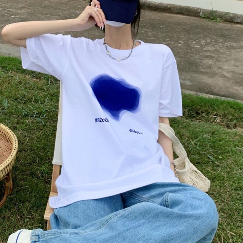 サマールーズシャツ トップス レッドラウンドネックプリントTシャツ 夏物 Oネック YY-ファッション87179821733