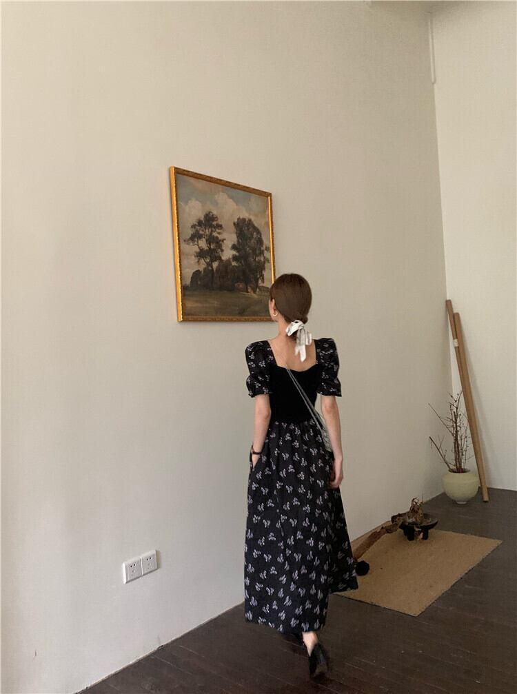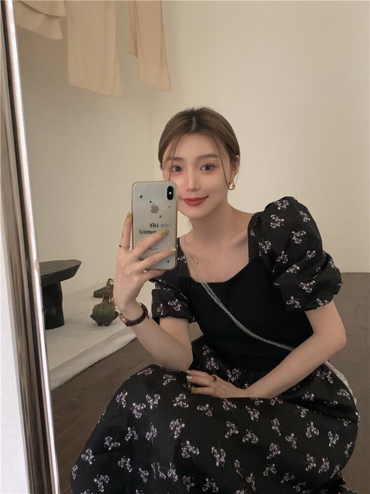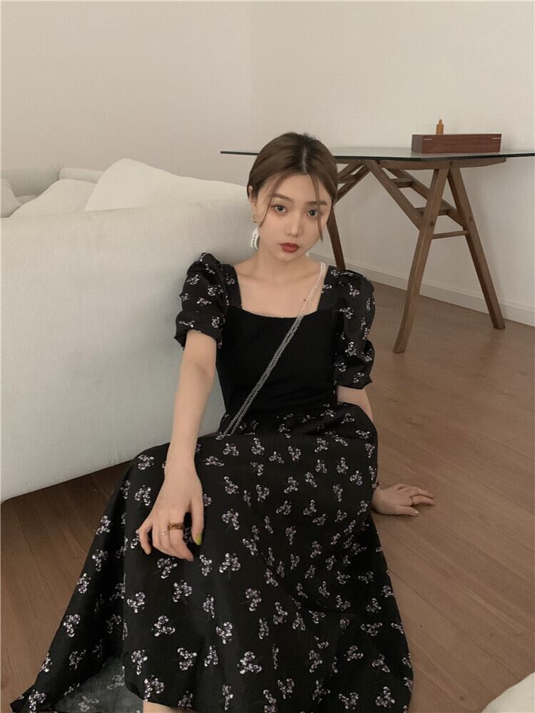 カラーフローラルドレス サマーハイウェスト薄手Aラインスカート 夏物 花柄 スクウェア YY-ファッション32222663873
