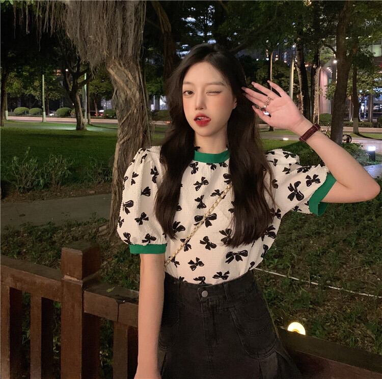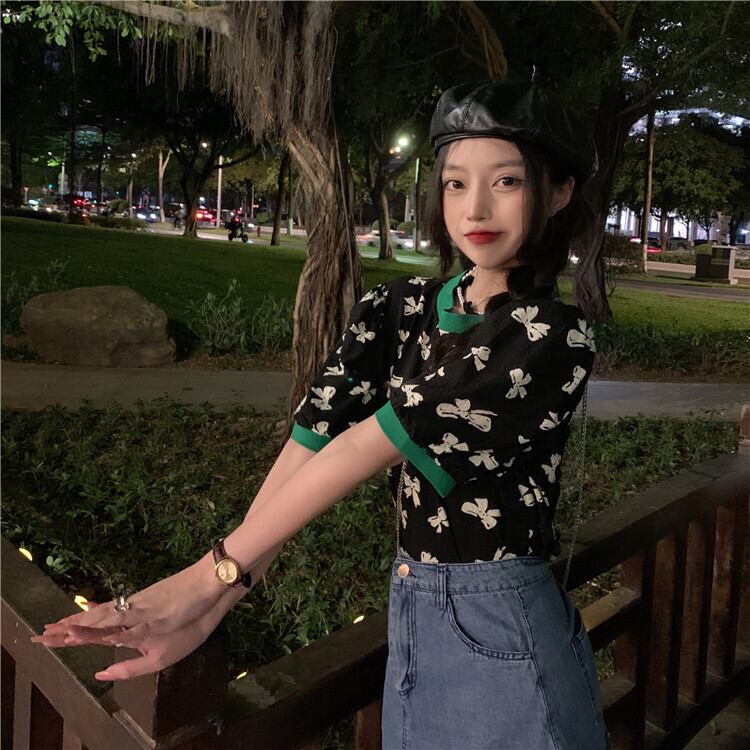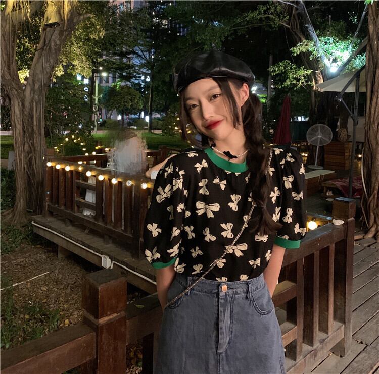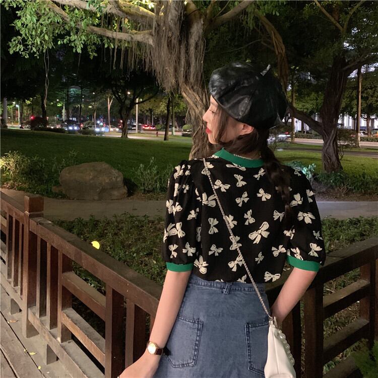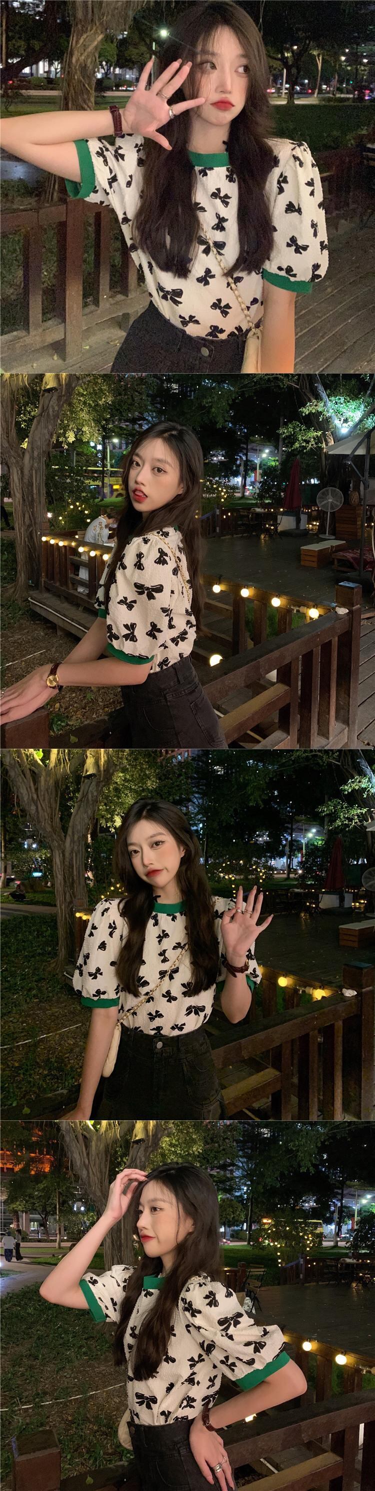 ニットショートスリーブサマー薄手ラウンドネックルーズトップス リボン 夏物 Oネック YY-ファッション24160986708
