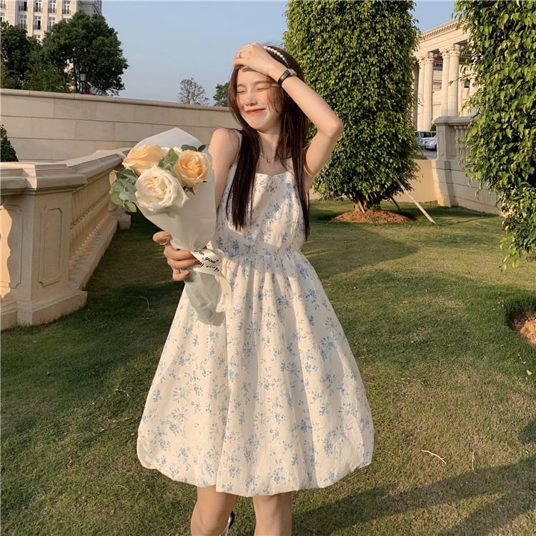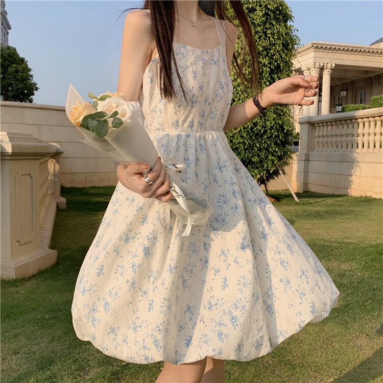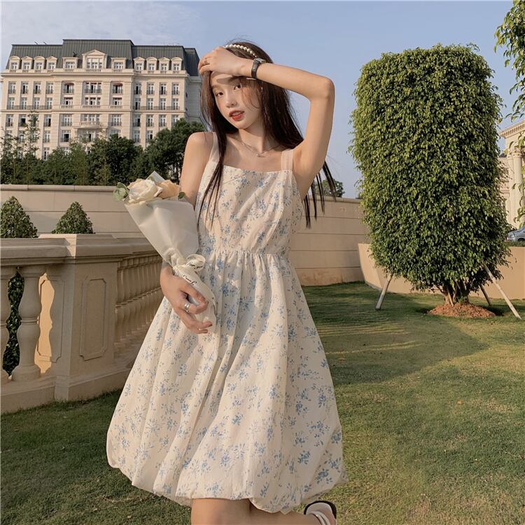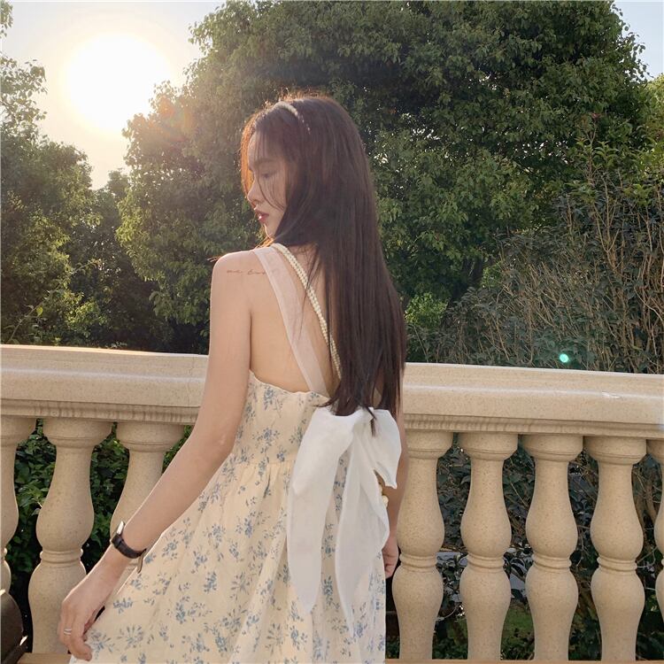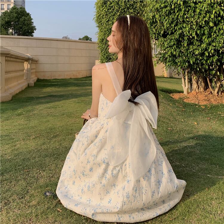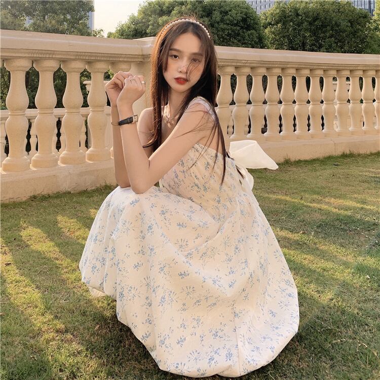 サマーウェストリボンバックフローラルドレス スカート 大人ガーリー スウィート キュート カジュアル 夏物 花柄 YY-ファッション26852771659