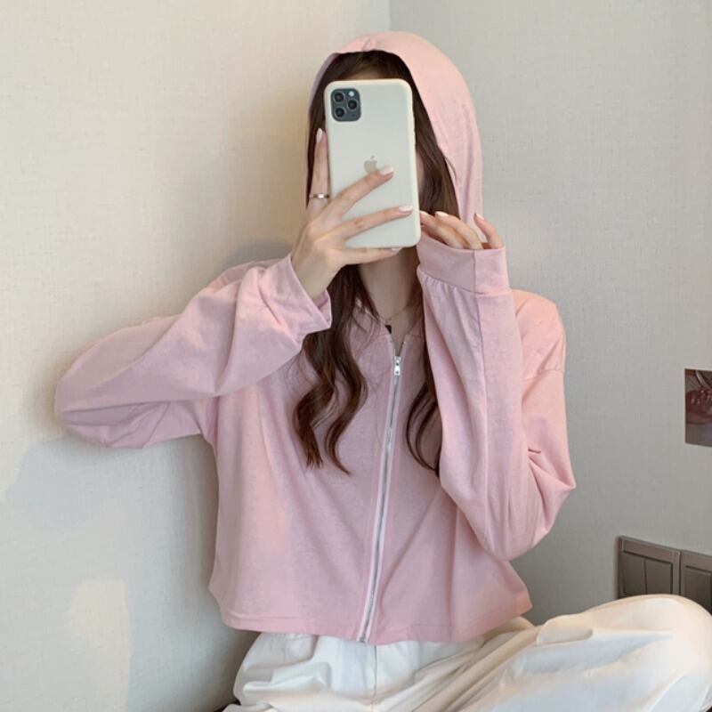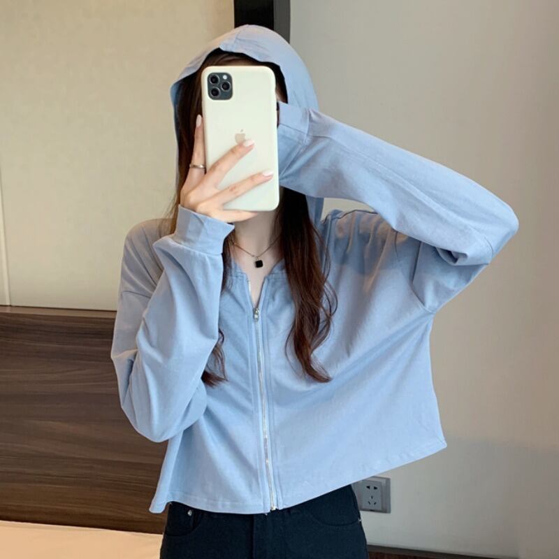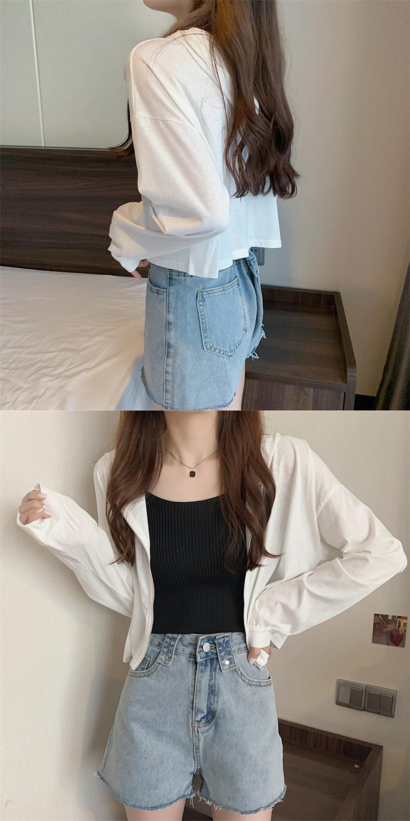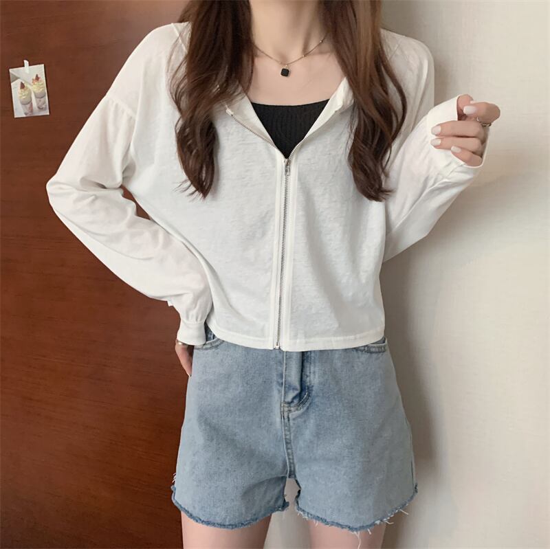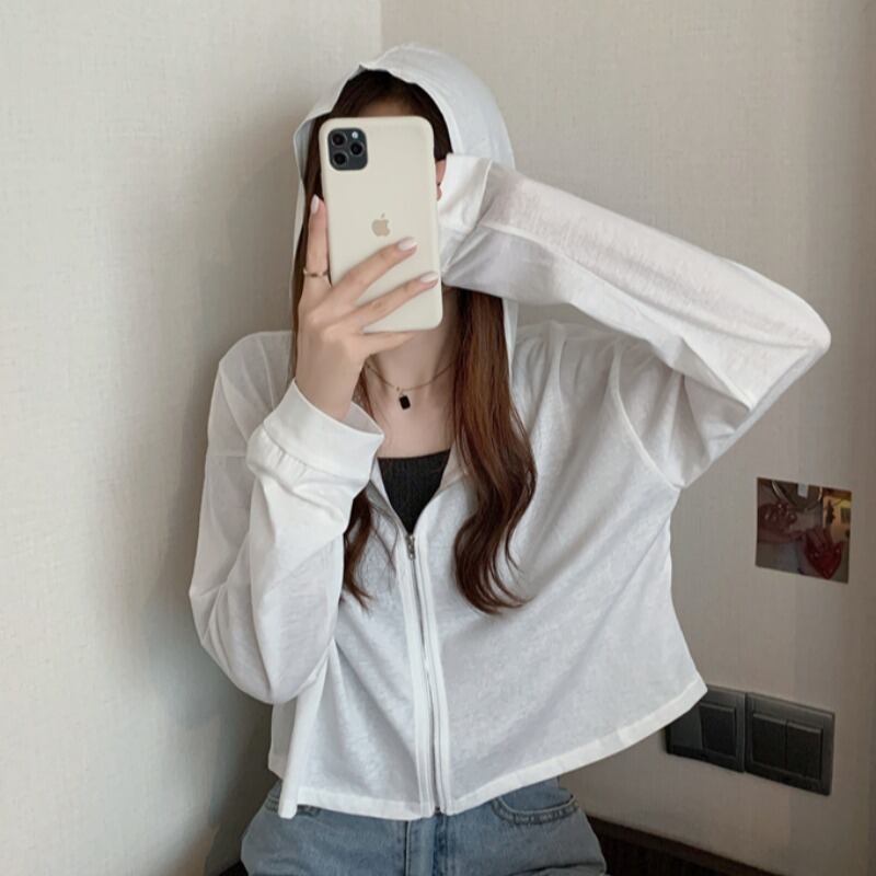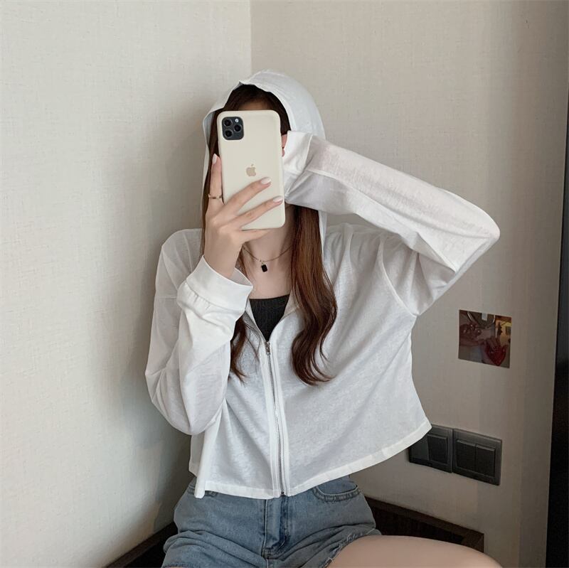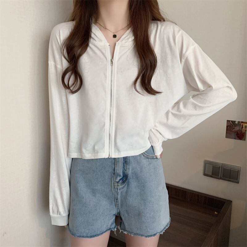 薄手コート サマースリムショートフードカーディガントップス ルーズホワイト ロング 夏物 YY-ファッション3986379560