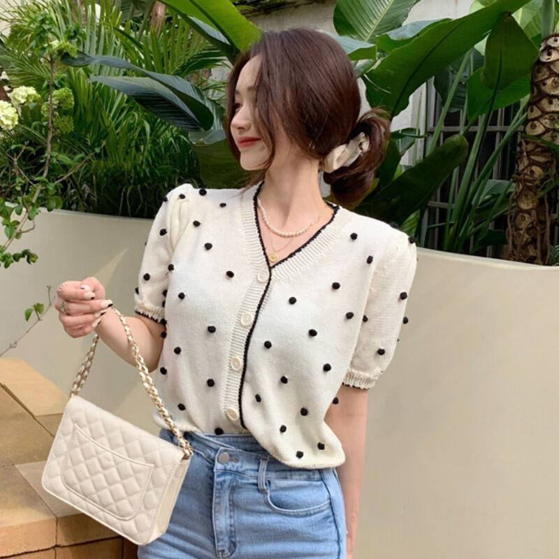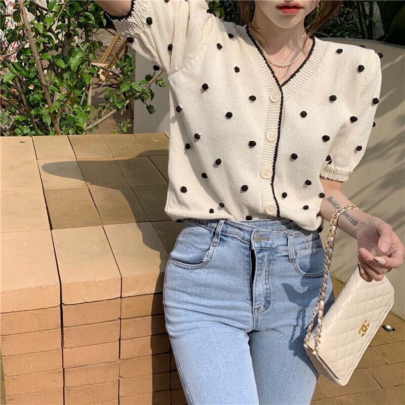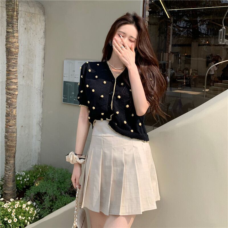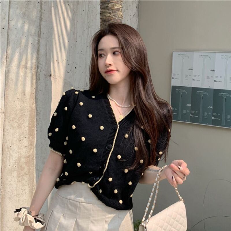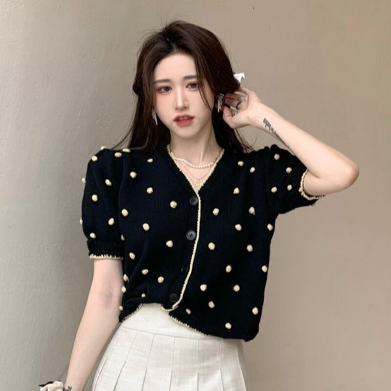 ショートニットカーディガンサマーレッドVネック薄手 夏物 YY-ファッション237252358
