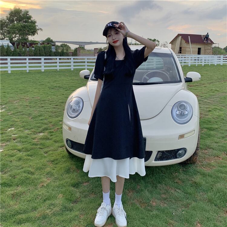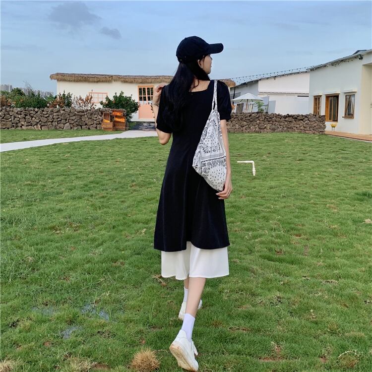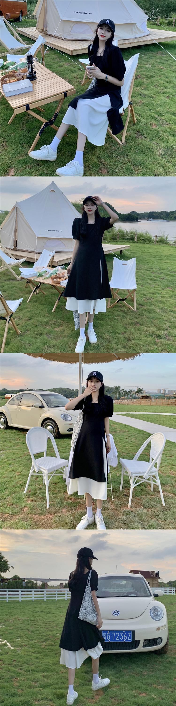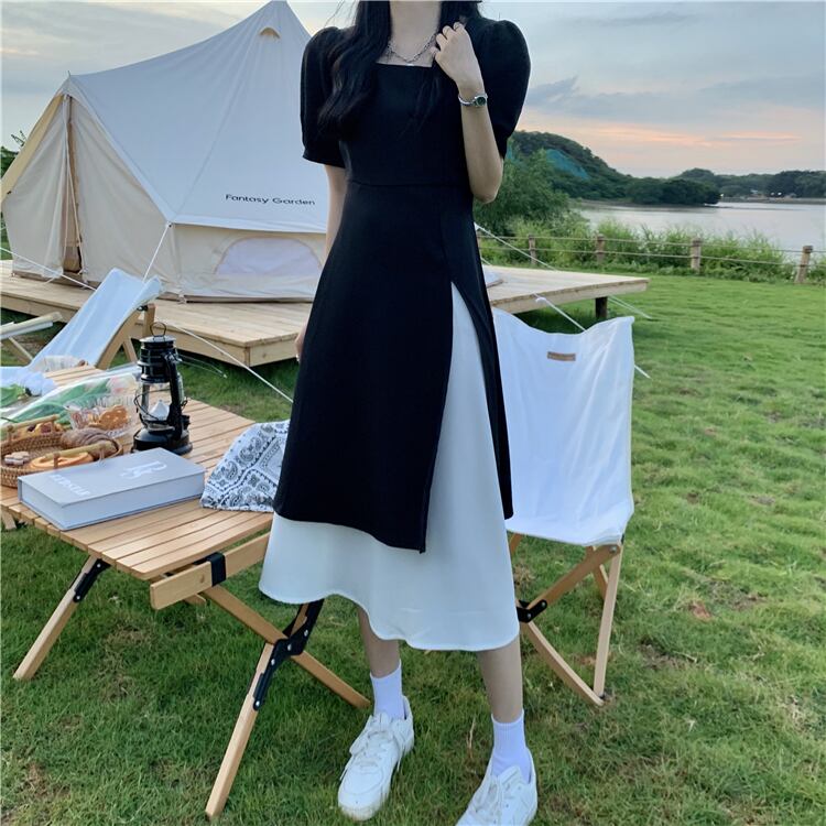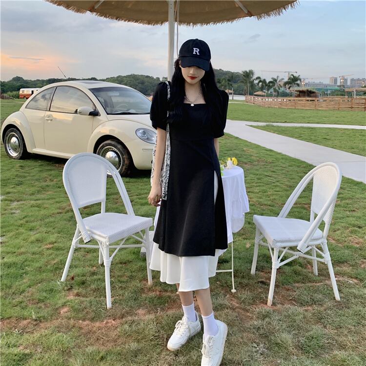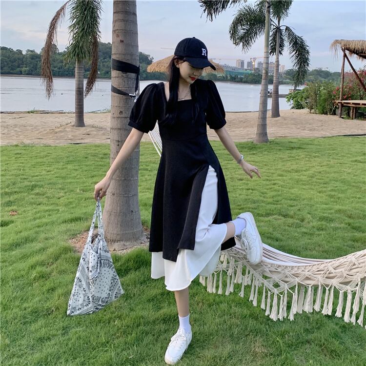 ドレス サマースタイルスリットウェストブラック ストリート 夏物 YY-ファッション43477199352