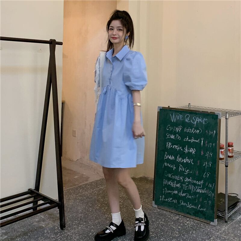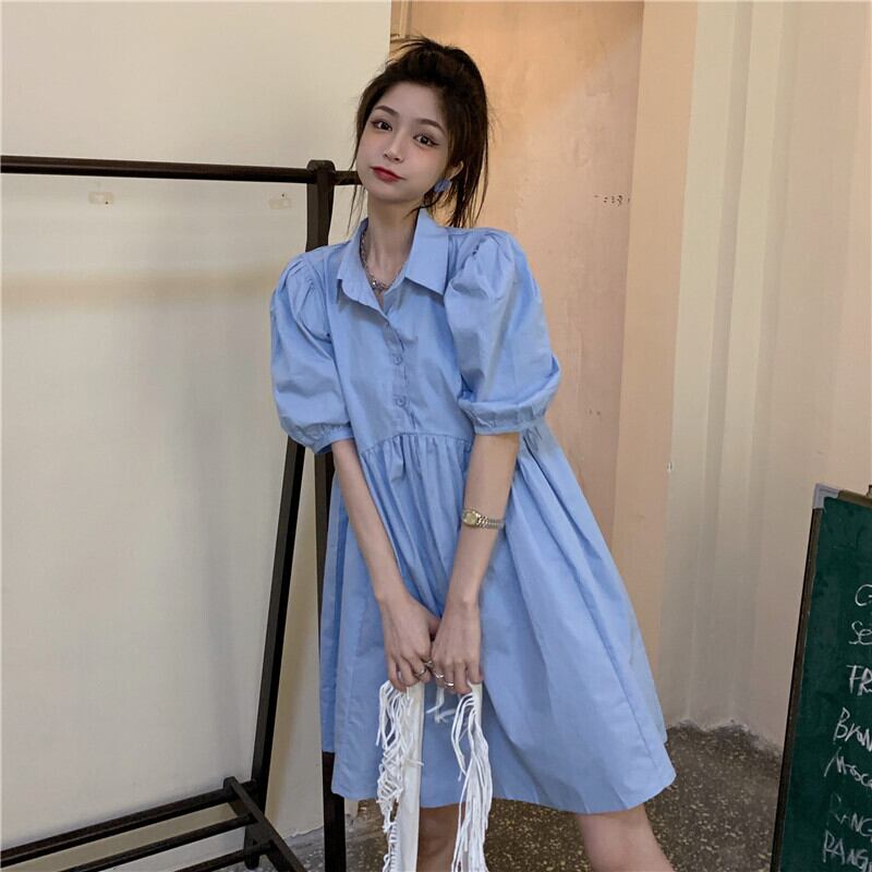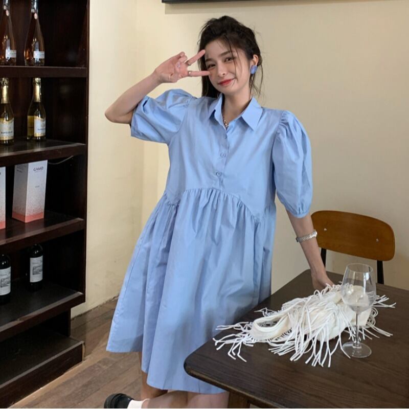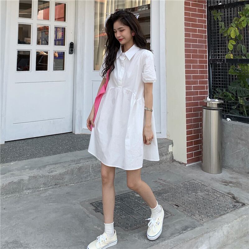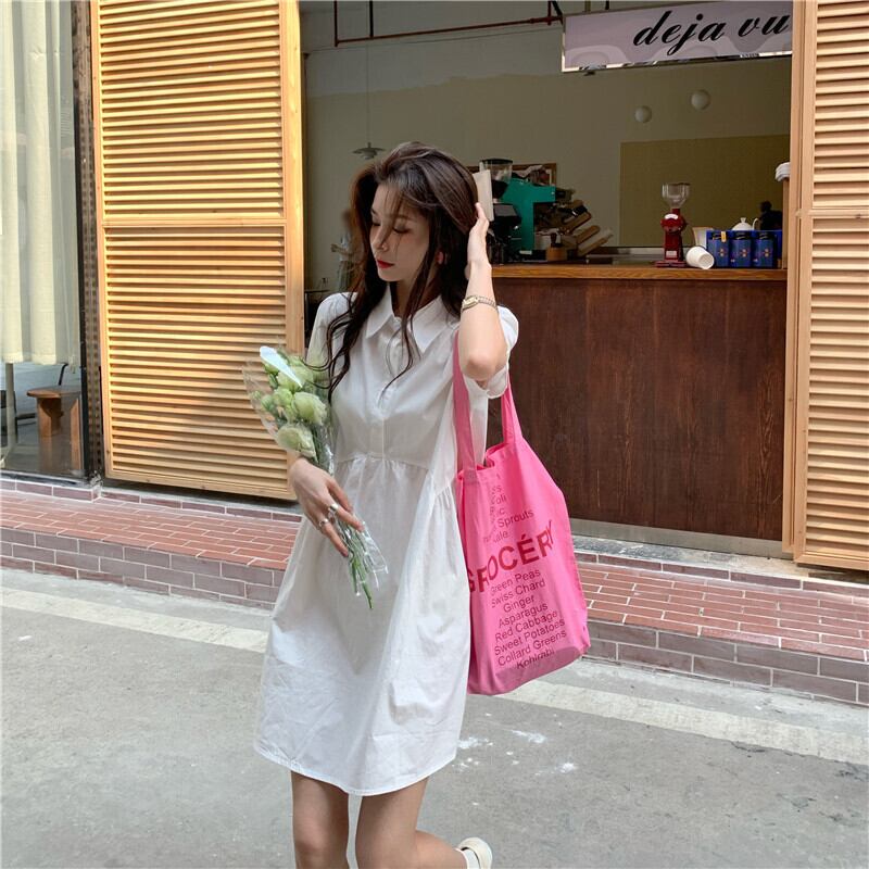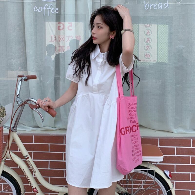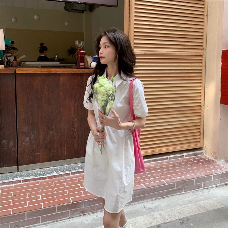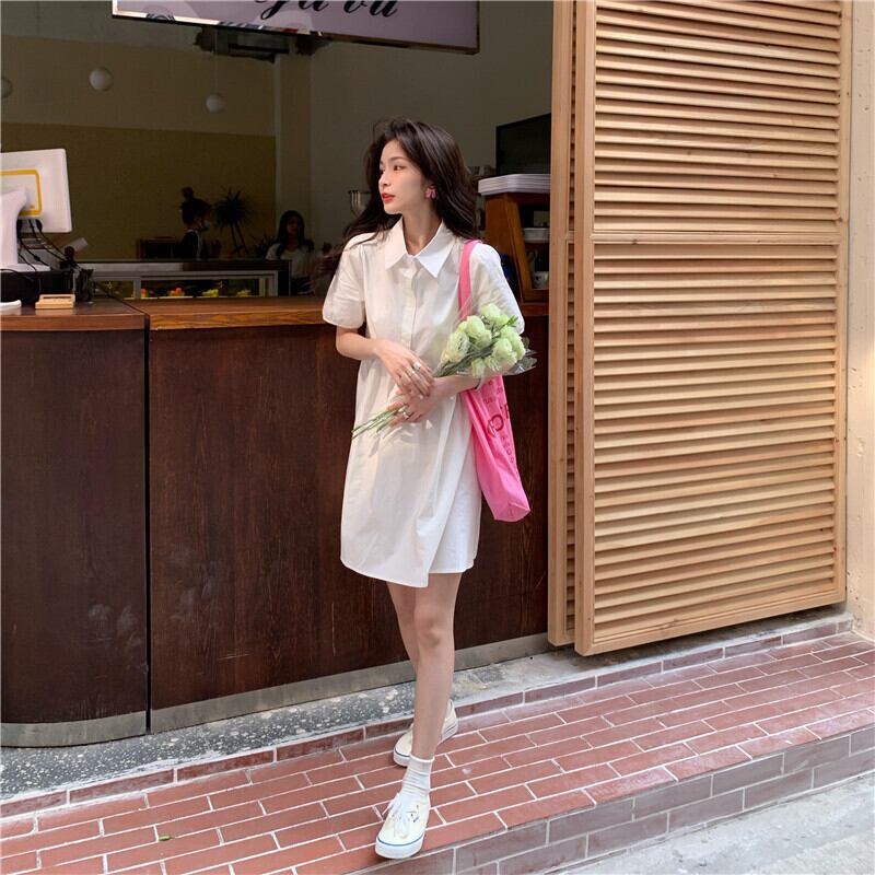サマーホワイトスリーブシャツ ドレス スカート 大人ガーリー スウィート キュート カジュアル 夏物 フラワーデザイン YY-ファッション82588011056