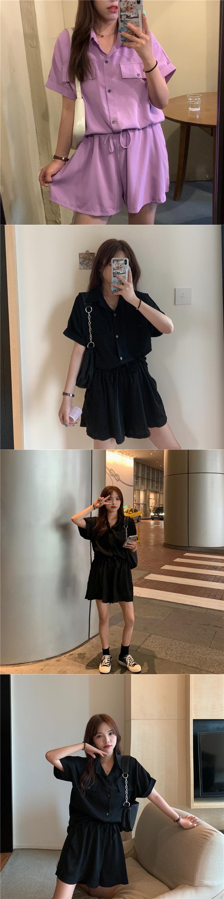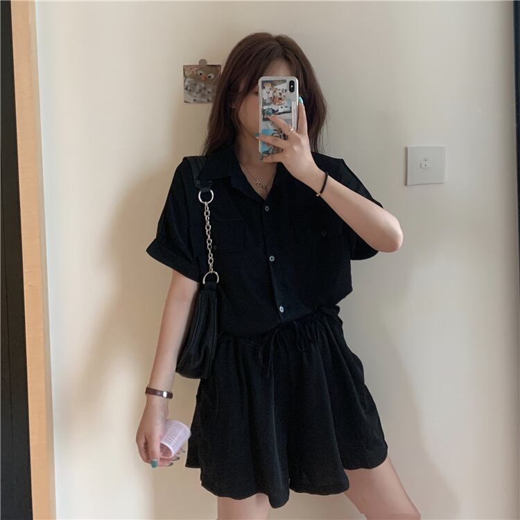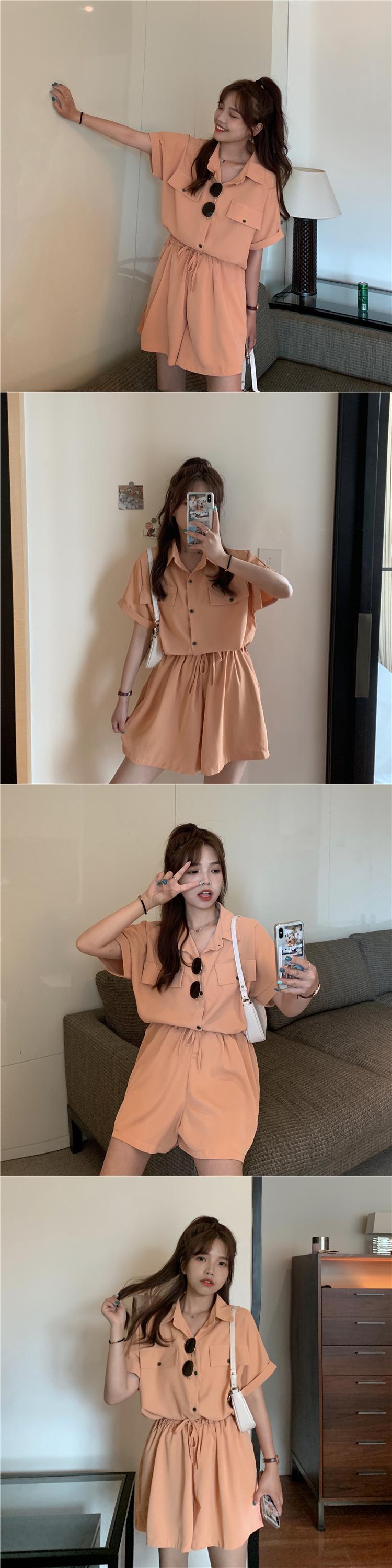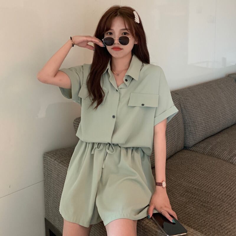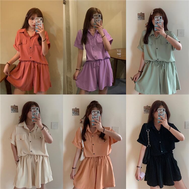 サマースタイルカジュアルルーズカラーシャツ Aラインショーツ 夏物 ブルマー YY-ファッション29887199861