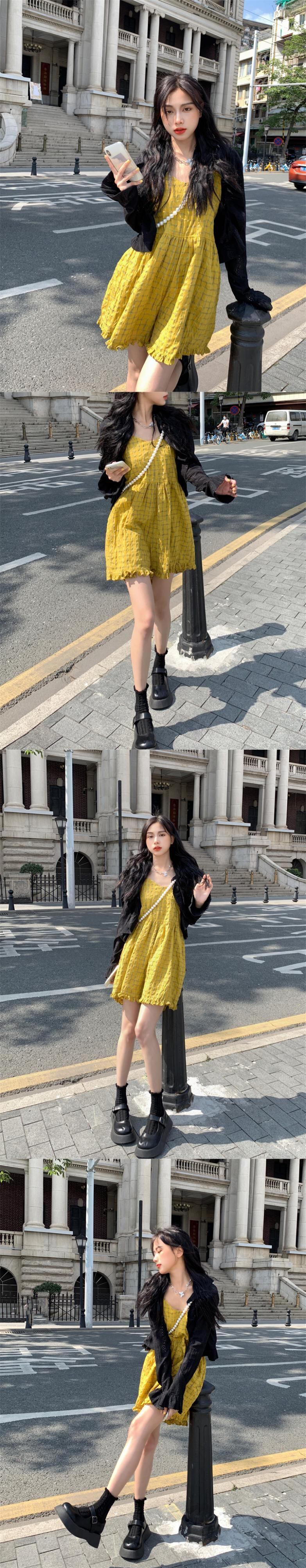 色:ピンクのジャンプスーツ,黄色のジャンプスーツ,ミントグリーンカーディガン,ブラックカーディガン