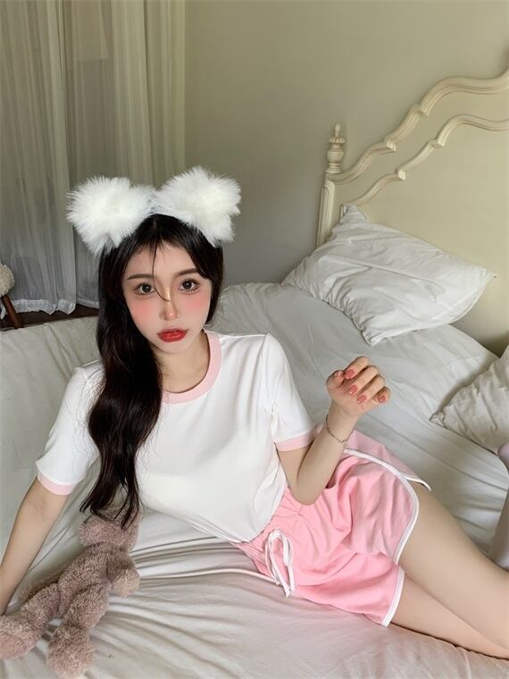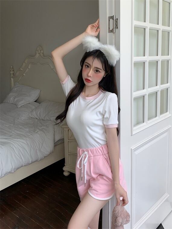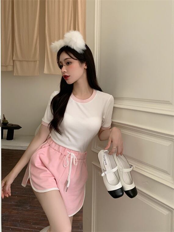サマーカラーラウンドネックTシャツ カジュアル薄手ショーツ 夏物 ブルマー Oネック YY-ファッション16091446068