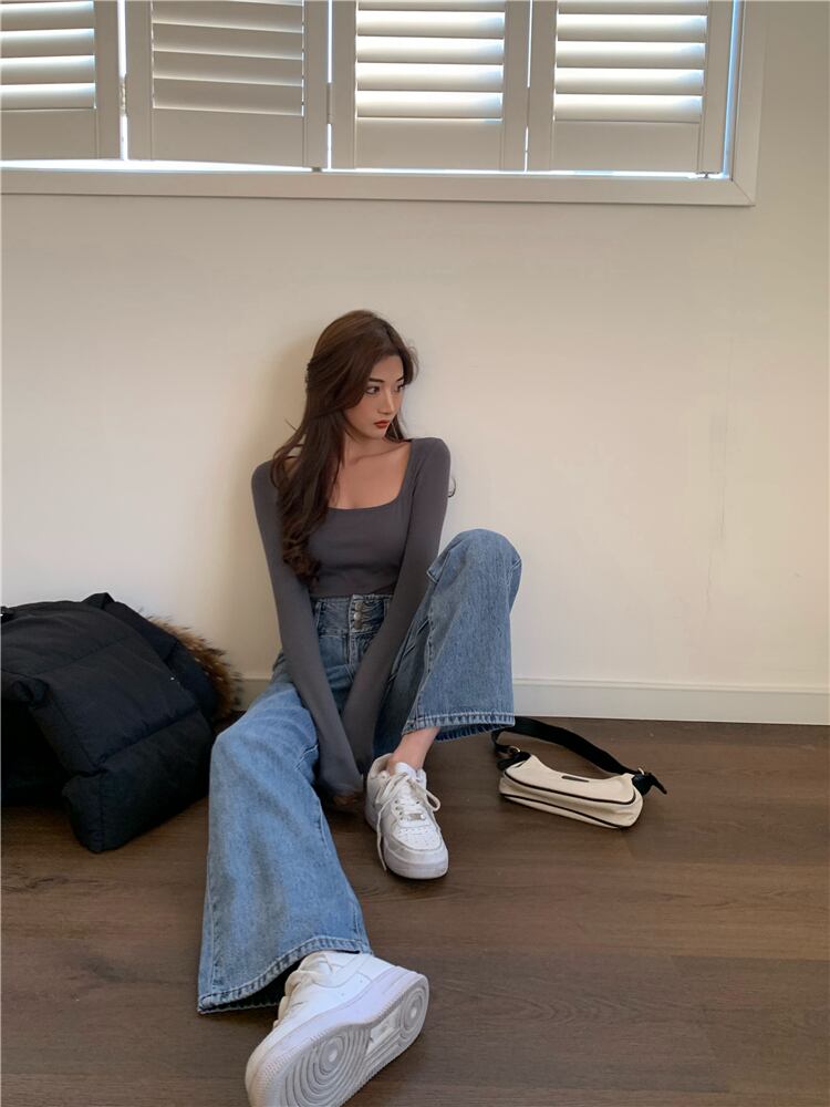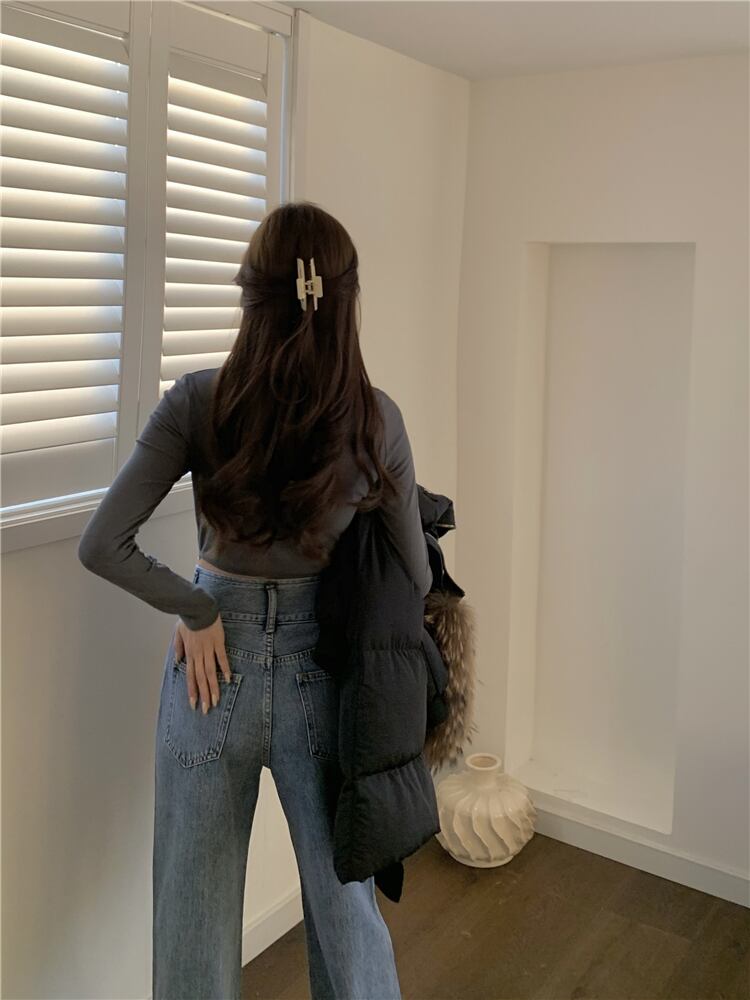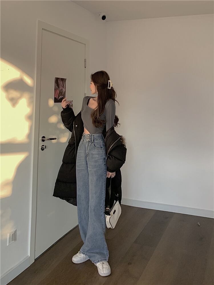 ジーンズ ハイウェスト薄手サマールーズダークパンツ 夏物 YY-ファッション15559719797