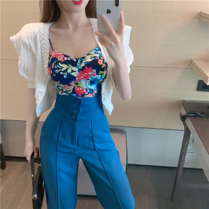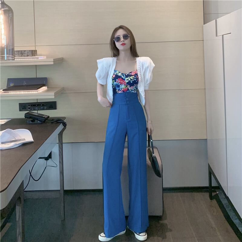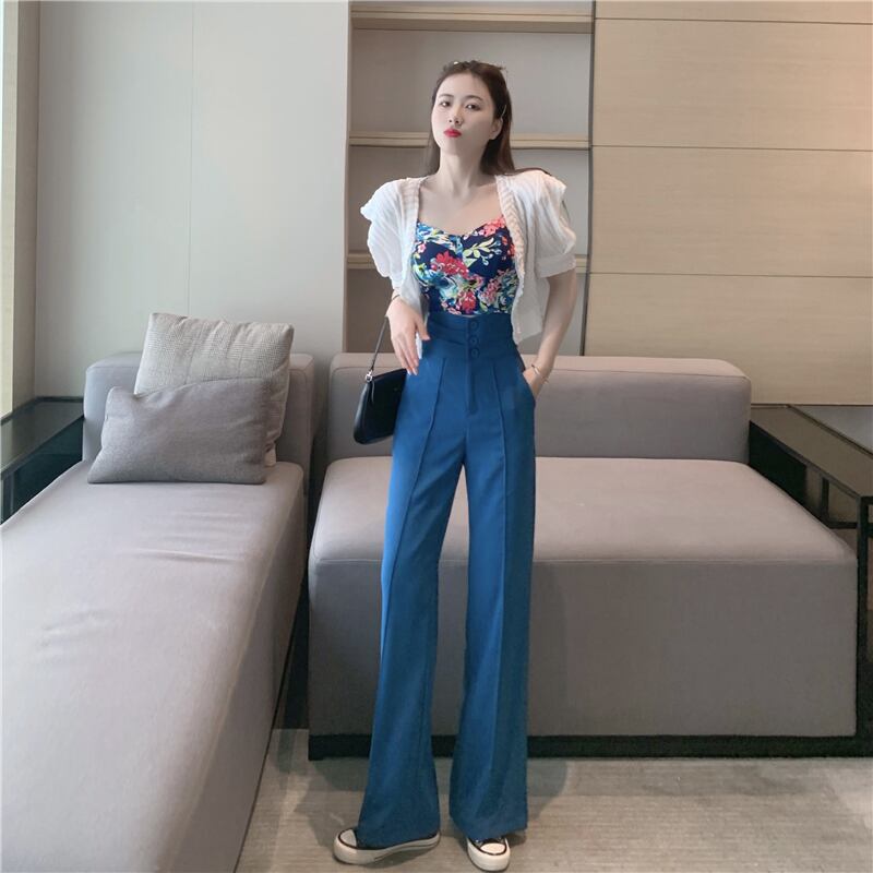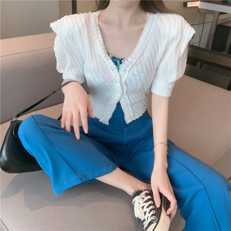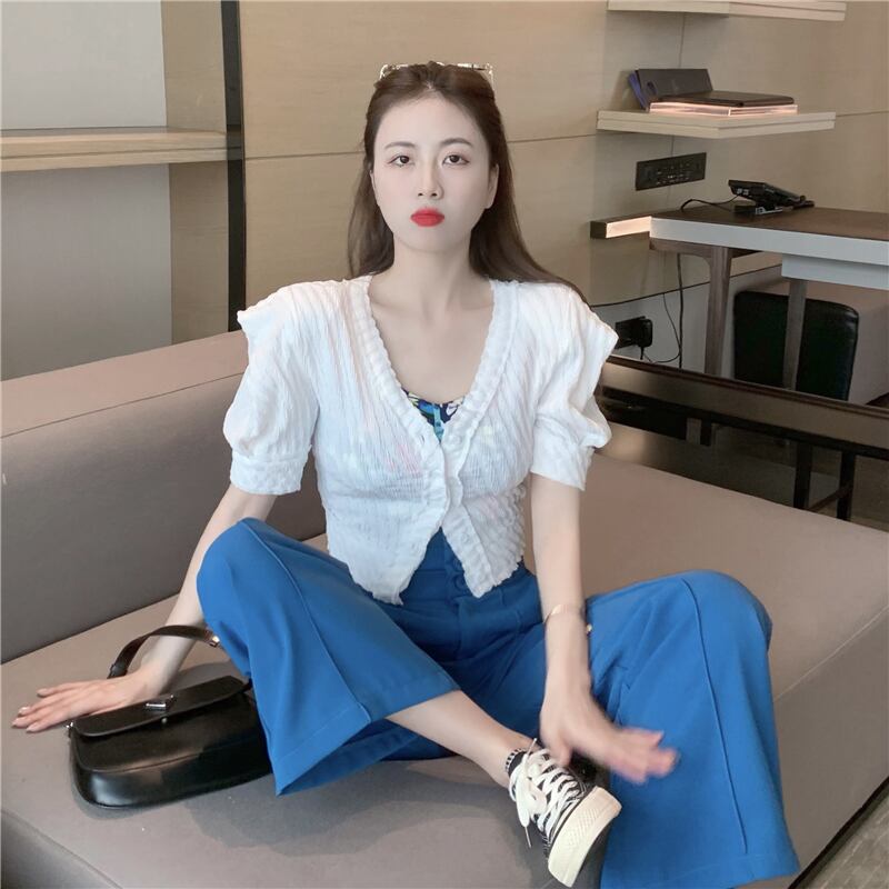 サマースタイルプリーツ薄手カーディガントップス ハイウェストパンツ レディース 夏物 YY-ファッション97434801028