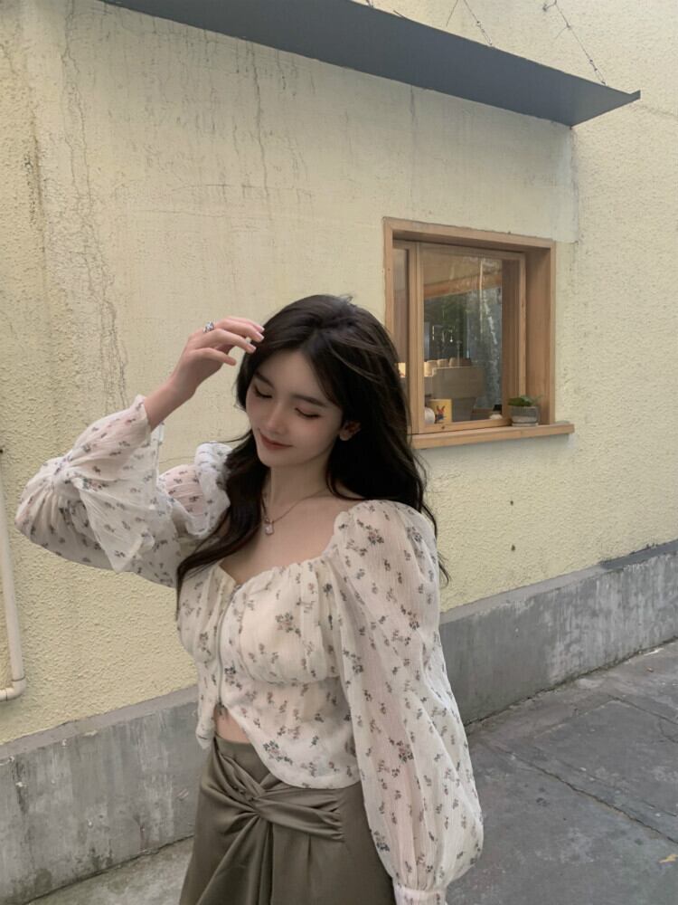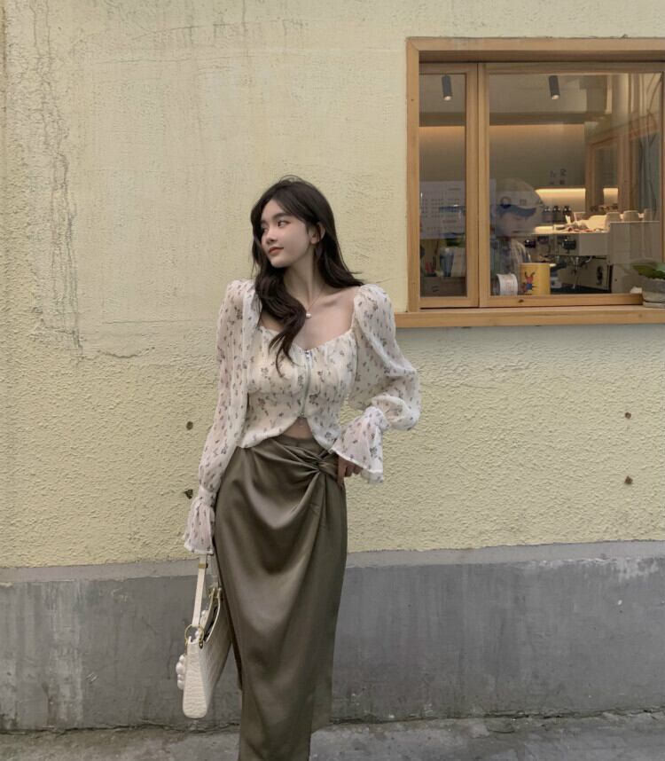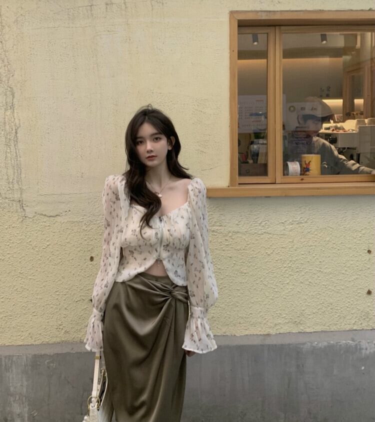 スカート サマーシフォンシャツ フローラルブラウス 夏物 花柄 YY-ファッション13182902226