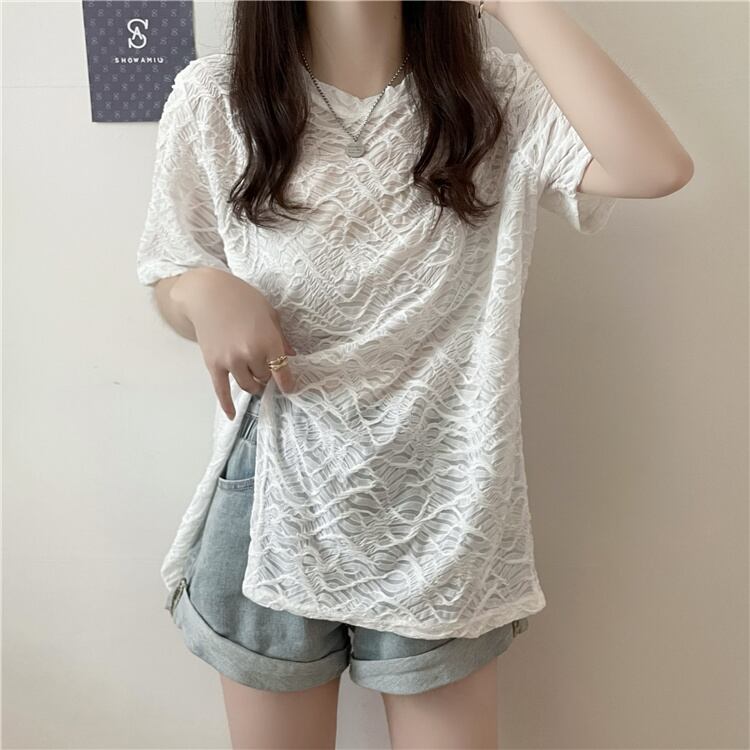 Tシャツ シャツ レディース薄手サマールーズホワイト 大人ガーリー スウィート キュート カジュアル 夏物 YY-ファッション66274342425