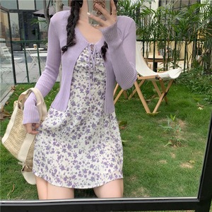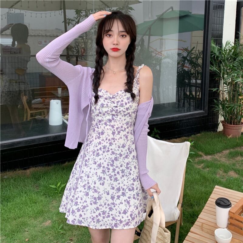 フローラルスカート ドレス サマースタイル 大人ガーリー スウィート キュート カジュアル 夏物 花柄 パープル YY-ファッション23825008988