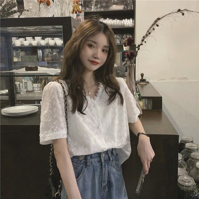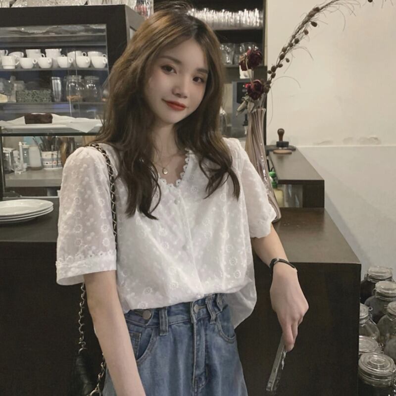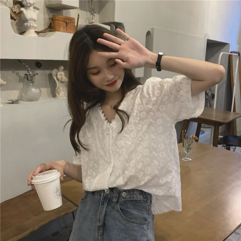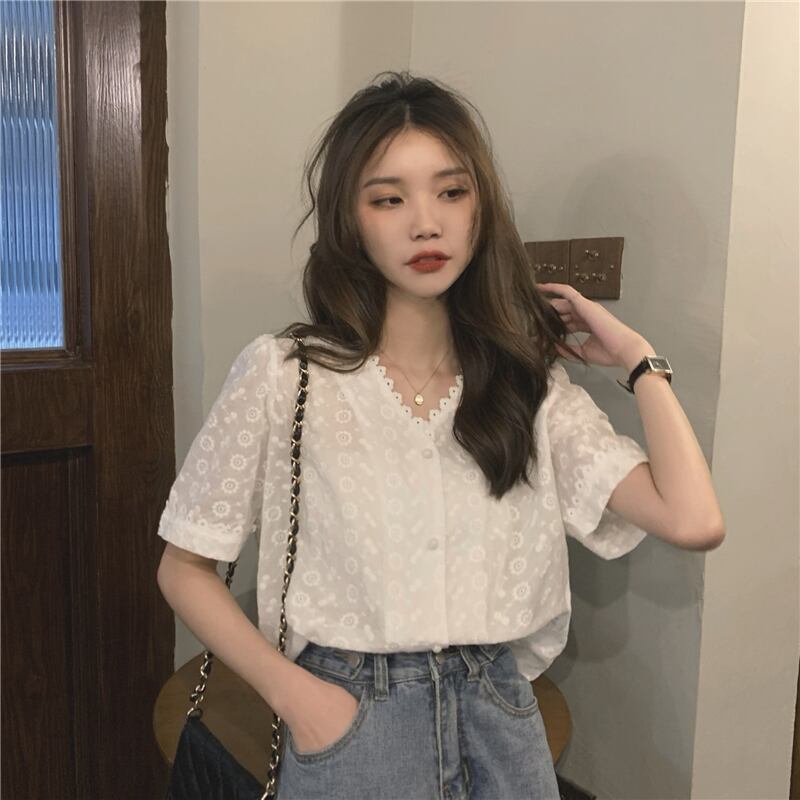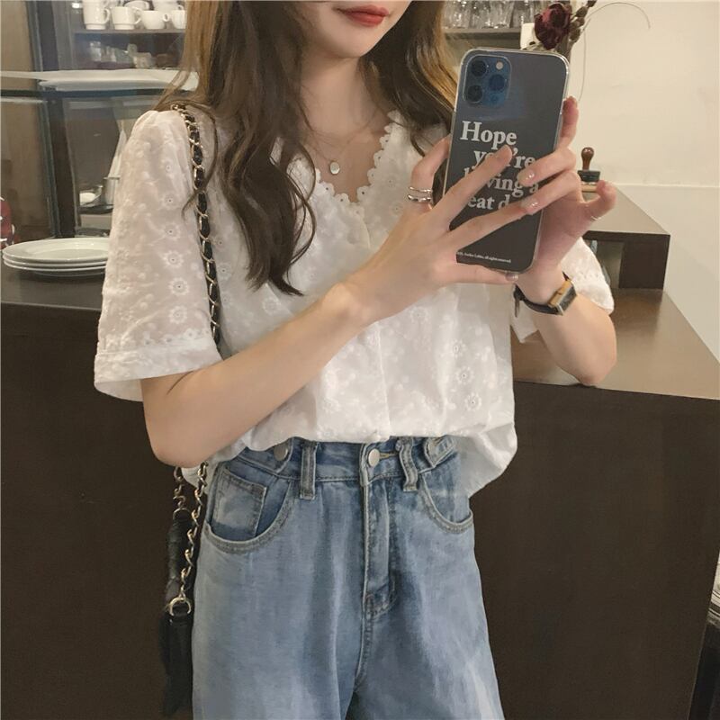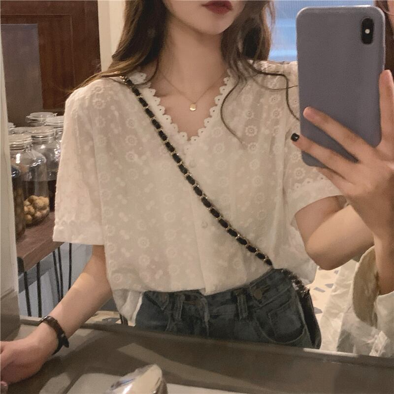 レースブラウス サマースタイルVネックシャツ 夏物 YY-ファッション10267334742