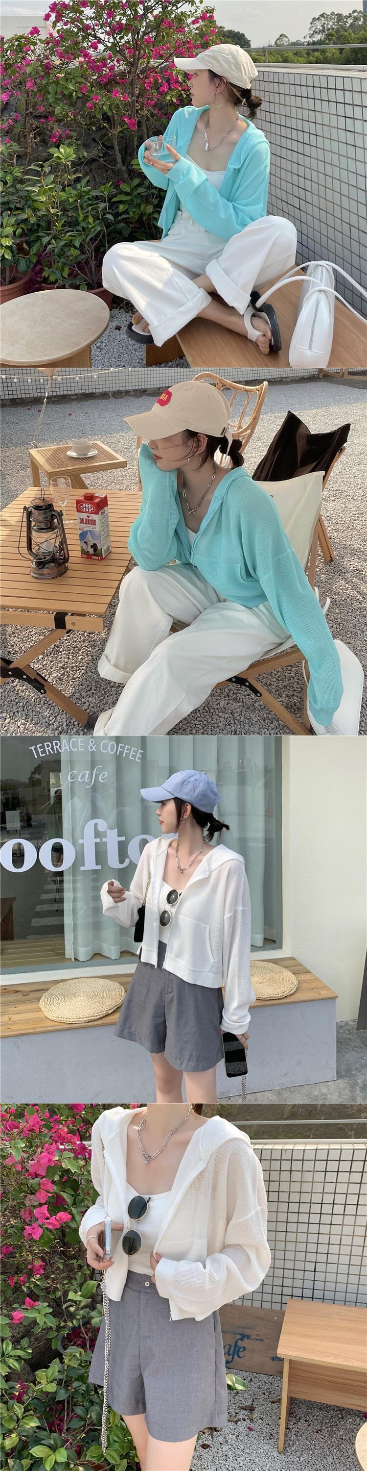 フードニットカーディガンジャケット サマールーズ薄手レッドスタイルトップス ロング 夏物 YY-ファッション7887150130