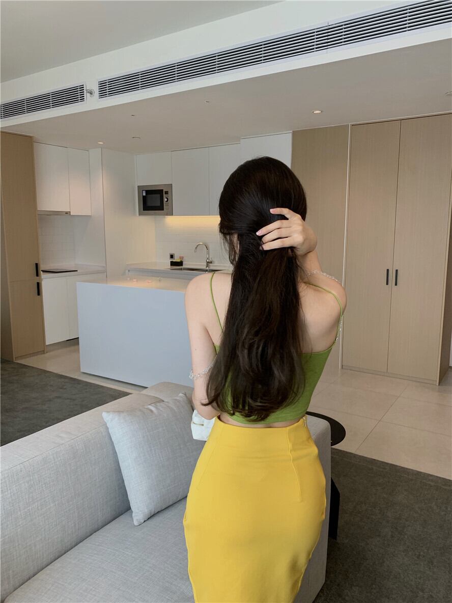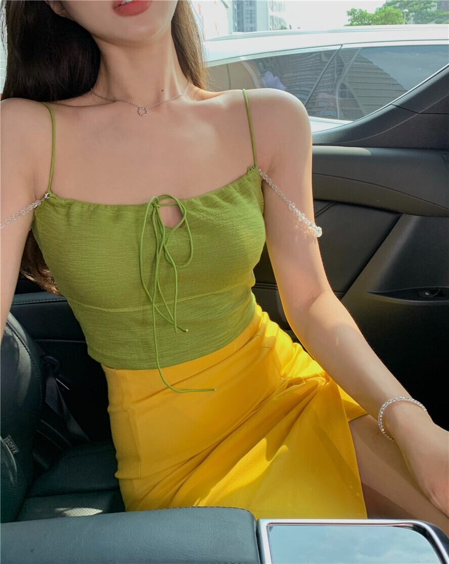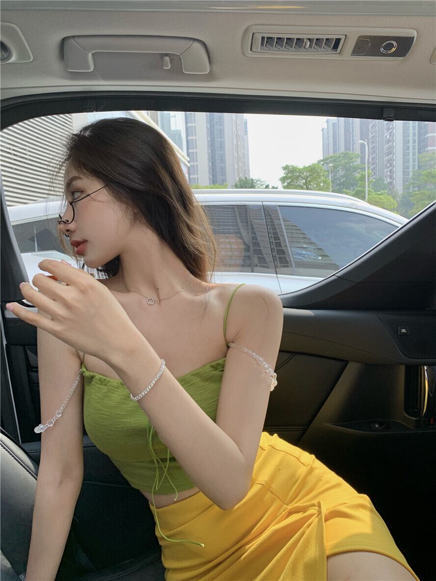 色:グリーンスリング,白いスリング,黄色のスカート,クリスタルストラップのペア