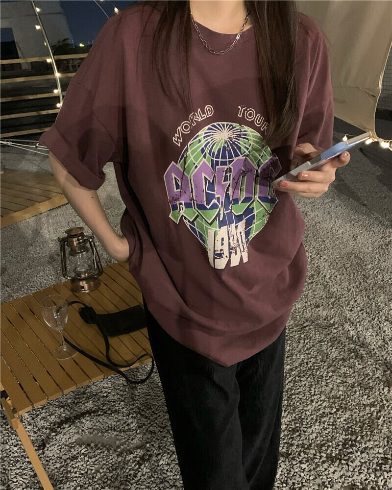プリントTシャツ サマースタイルロングルーズトップス ストリート かわいい 夏物 YY-ファッション39396671285