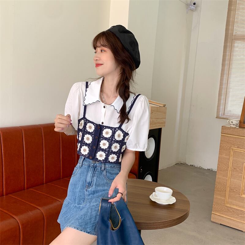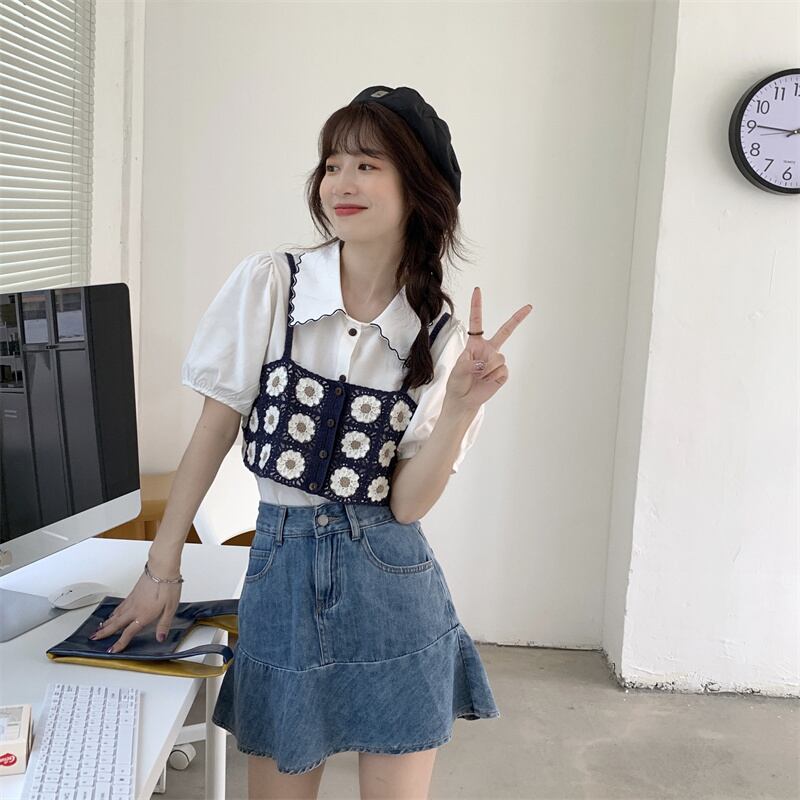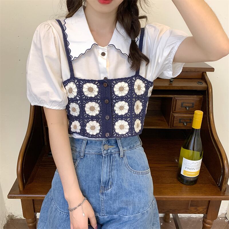 サマールーズカラースリーブトップス シャツ セット ランタンスリーブ 夏物 YY-ファッション14662900666