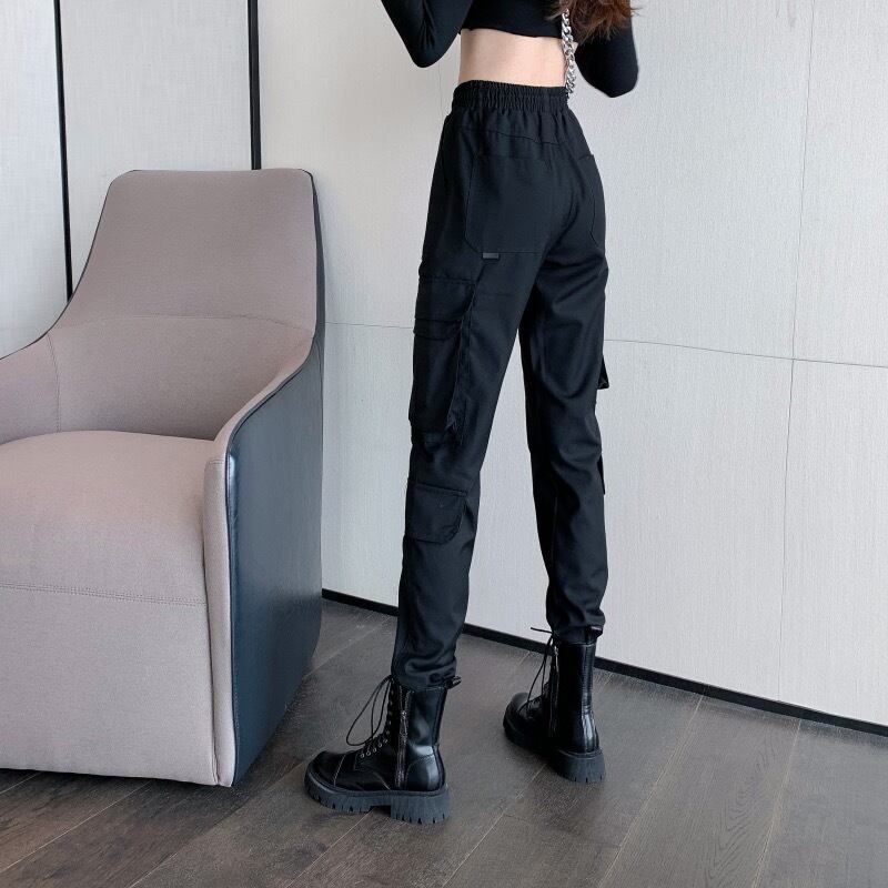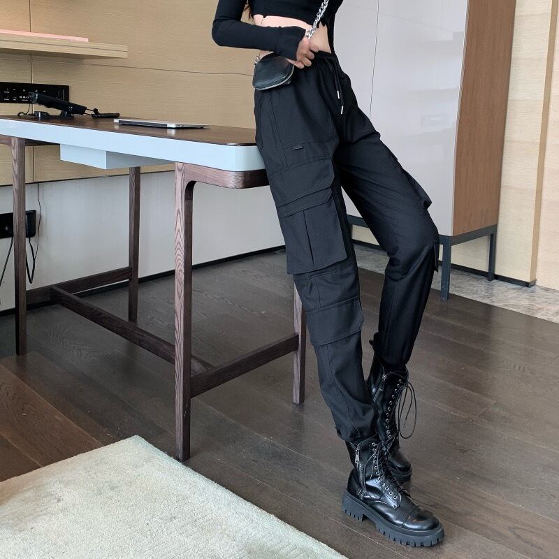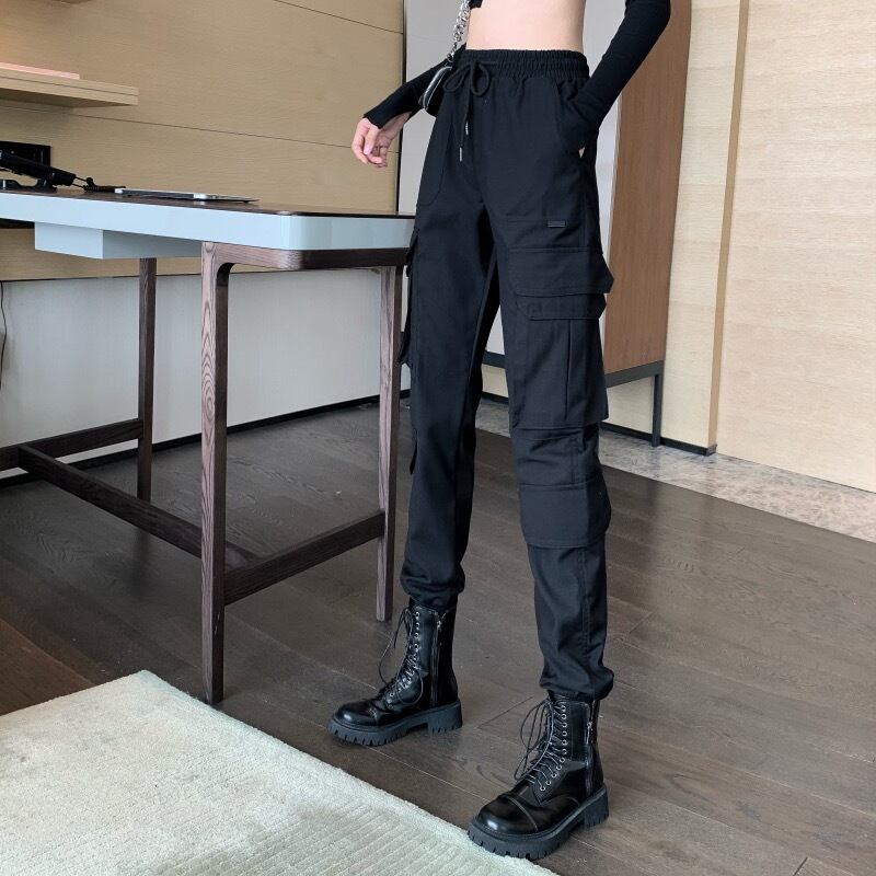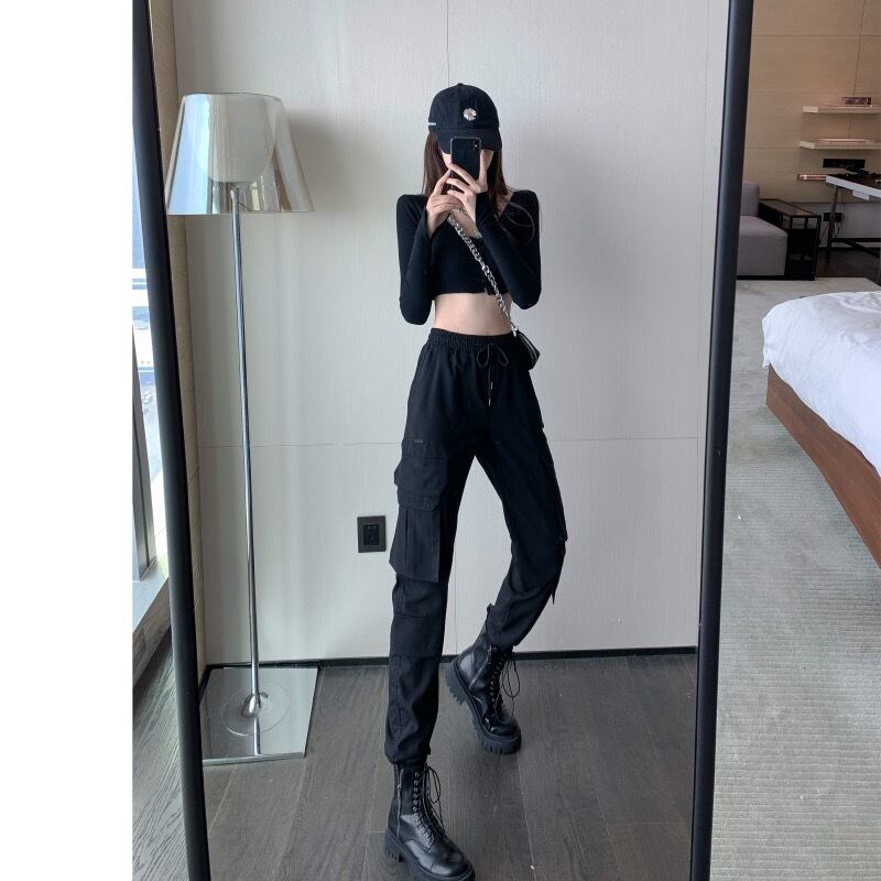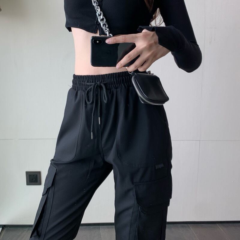 ブラックオーバーオール ハイウェストウェストパンツ スプリングサマーカジュアルルーズレギンス 春物 夏物 YY-ファッション47419701768