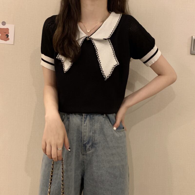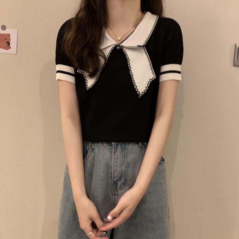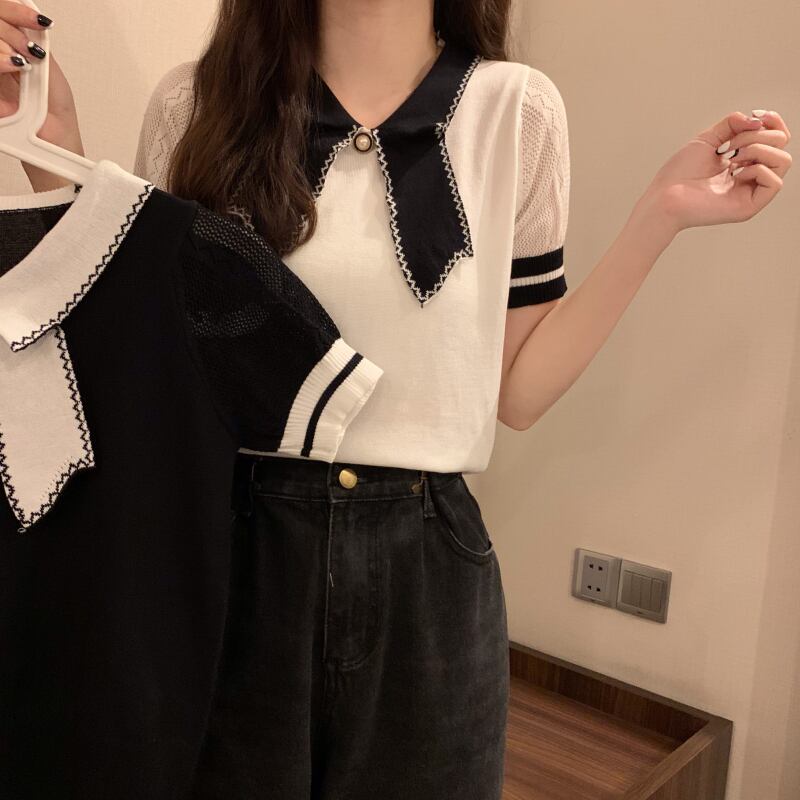 色:白いカラーブロックセーター,ブラックカラーブロックセーター