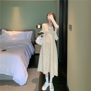 薄手ニットカーディガンフローラルドレス ロング 花柄 YY-ファッション84898497817