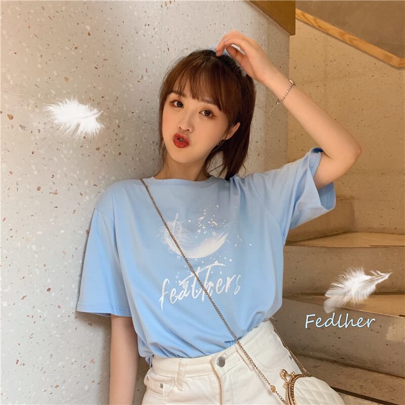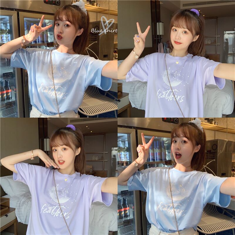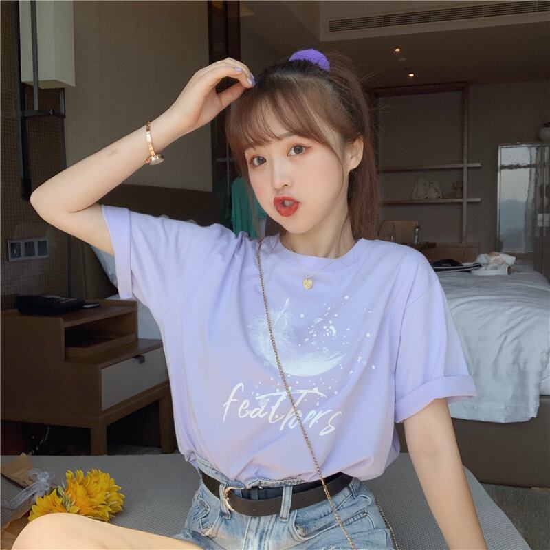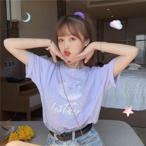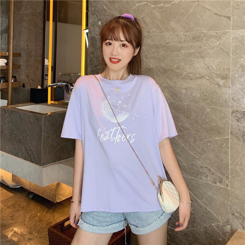 トップス レディースサマープリントルーズTシャツ 夏物 パープル YY-ファッション15675942980