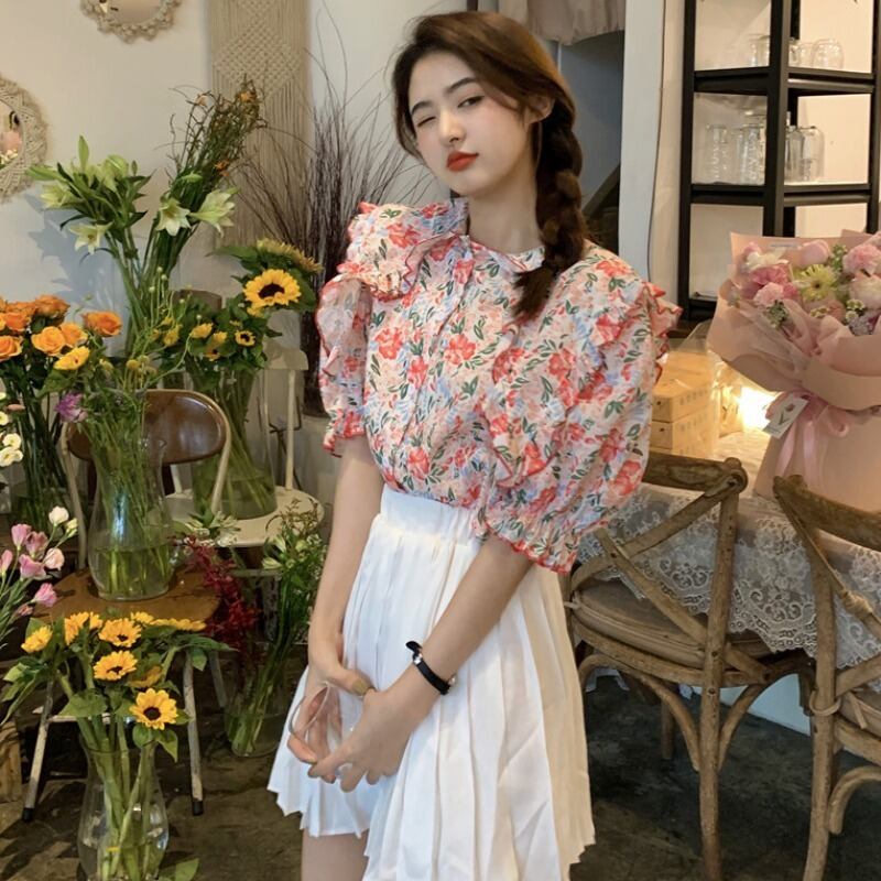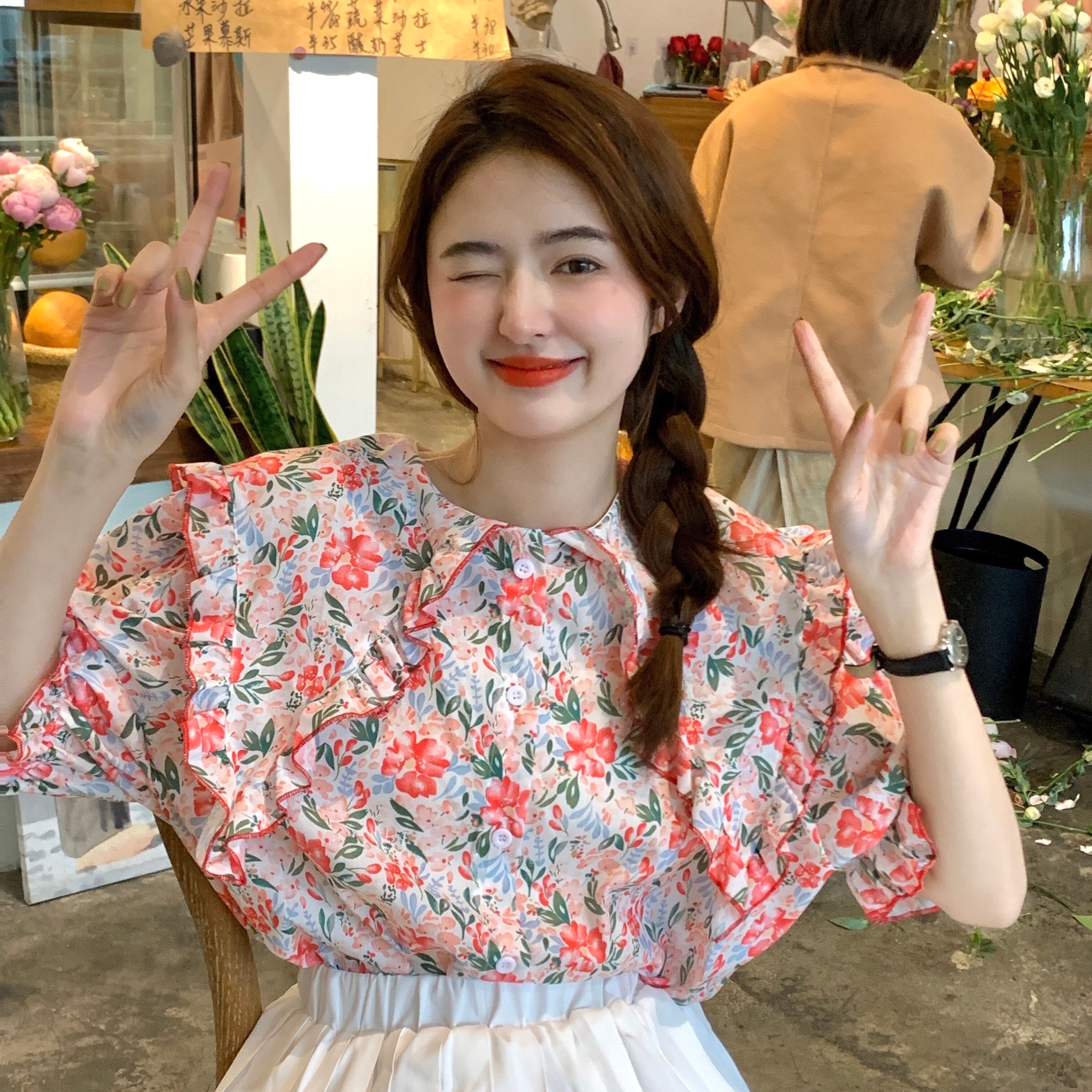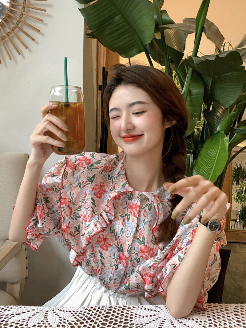 フローラルシャツ スリーブサマーカラートップス 夏物 花柄 YY-ファッション83129601909