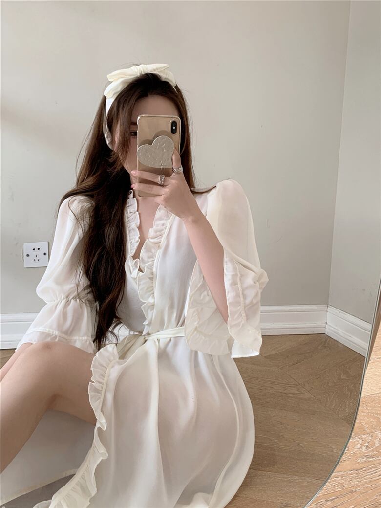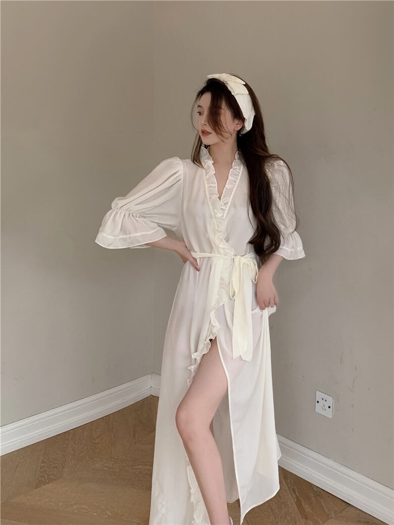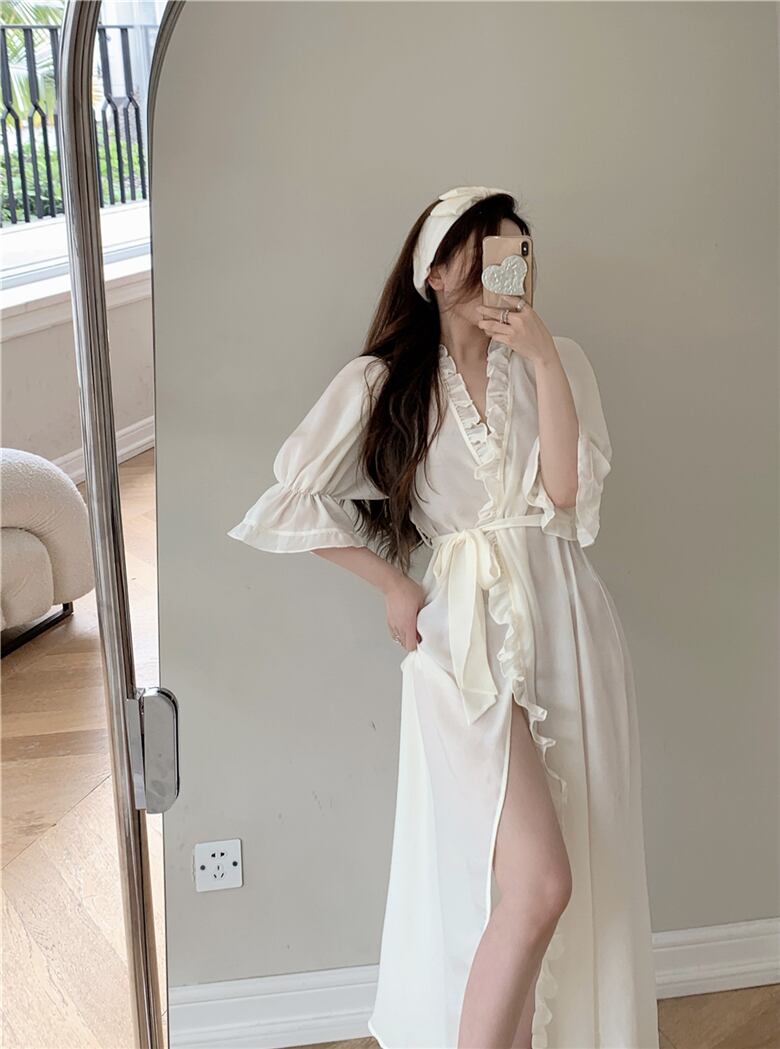 レディースサマーレッドスタイル薄手Vネックロングレース 夏物 YY-ファッション8194647756