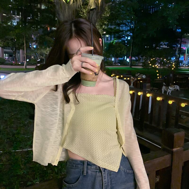 色:青いスリング,黄色のサスペンダー,ブラックサスペンダー,グリーンスリング,フォグブルーカーディガン,薄黄色のカーディガン,ミントグリーンカーディガン,白いカーディガン