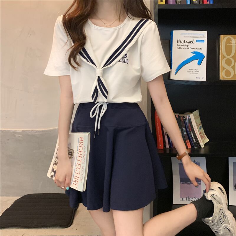 スカート サマールーズネイビーハイウェストウェストプリーツショーツ ストリート 夏物 ブルマー YY-ファッション47811440078