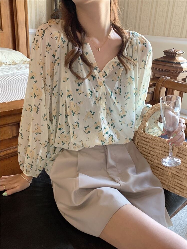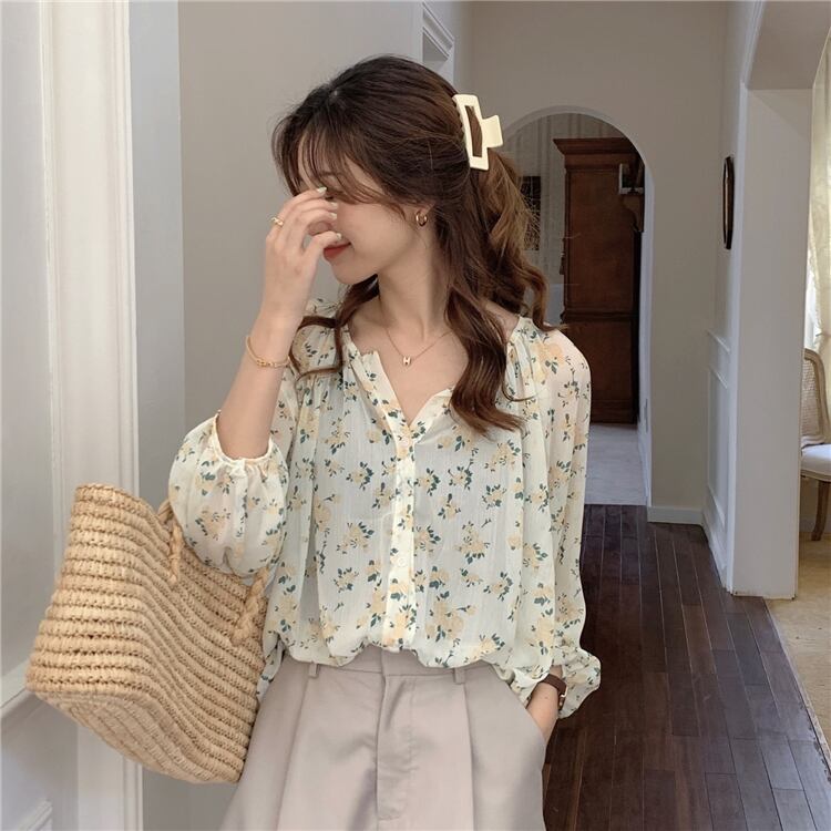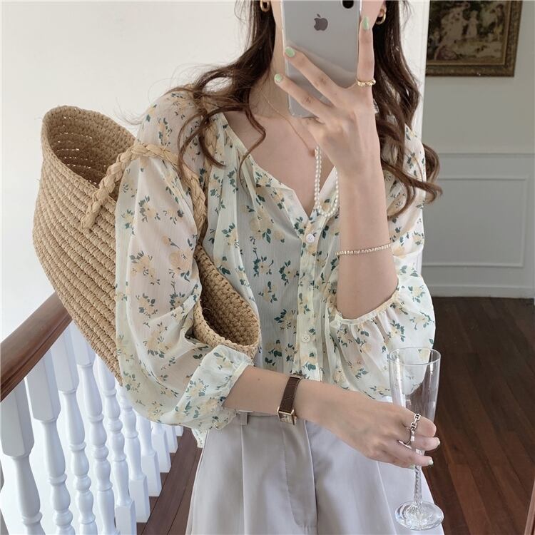 シャツ ブラウス サマー薄手フローラルスリーブシフォン 夏物 花柄 YY-ファッション65025391726