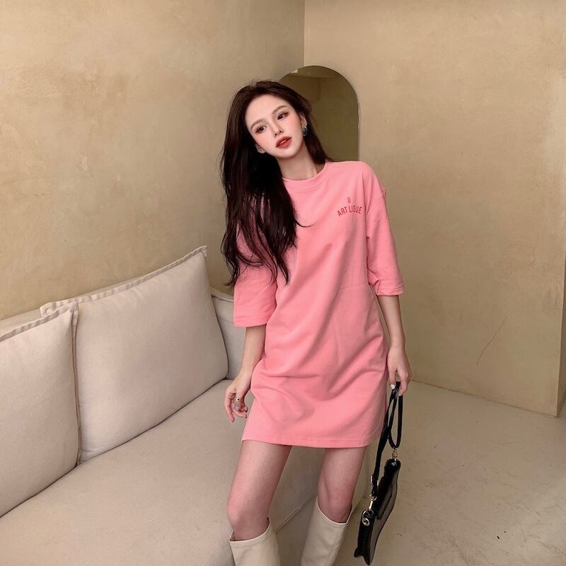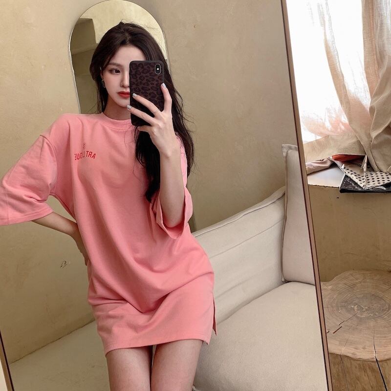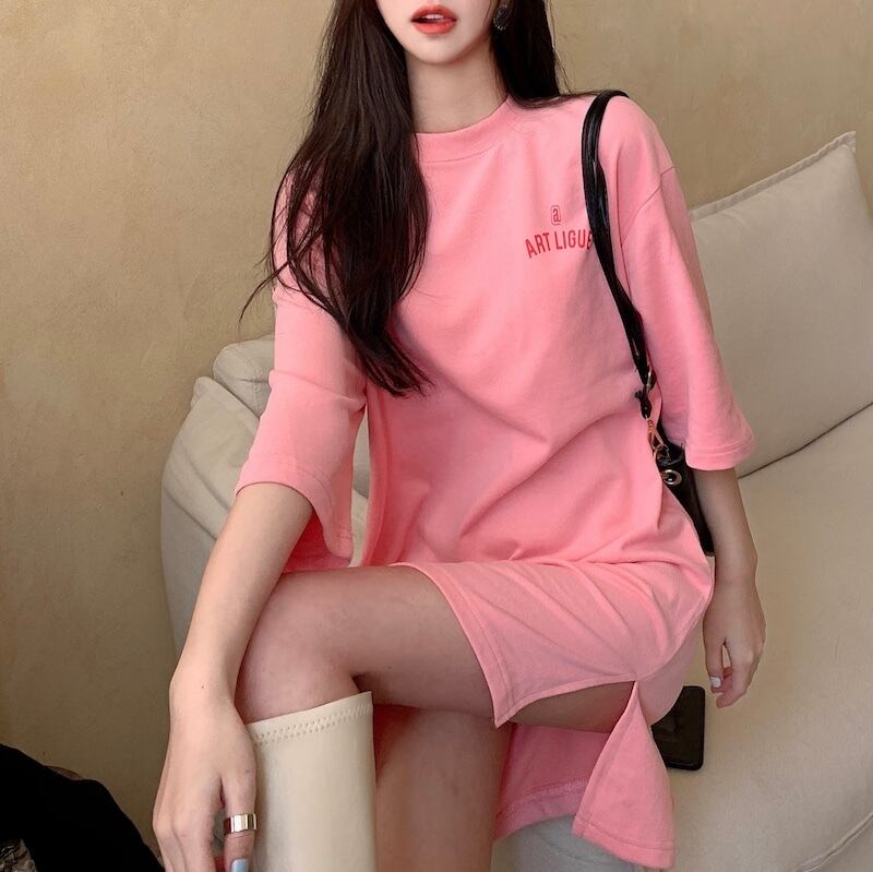 ラウンドネックプリントAラインスカート サマールーズ薄手カジュアルドレス 夏物 Oネック YY-ファッション96917661056